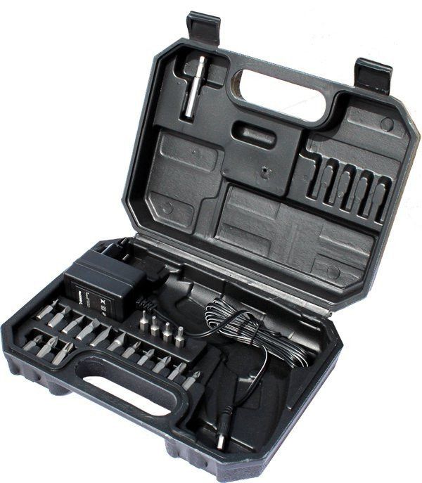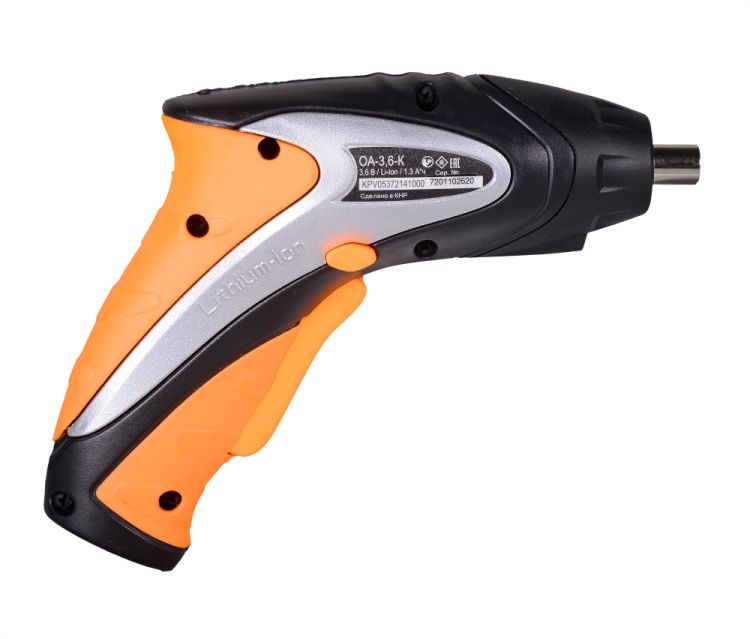 Аккумуляторная отвертка ВИХРЬ ОА-3,6-К – бытовой ручной электроинструмент для закручивания и откручивания шурупов, саморезов, винтов, дюбелей и других видов крепежных изделий. Питание от встроенной литий-ионной аккумуляторной батареи. Кнопка переключателя служит для изменения направления вращения шпинделя (реверс). Среднее положение переключателя реверса блокирует выключатель отвертки.