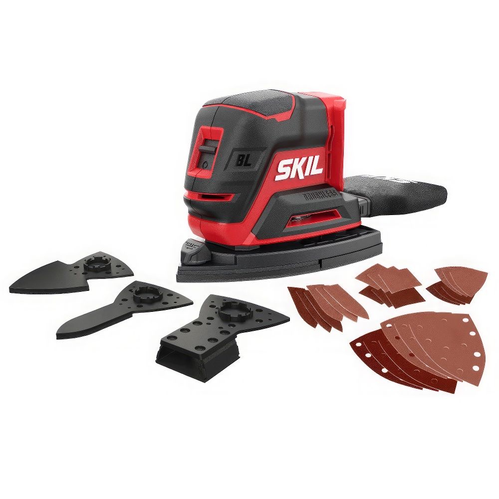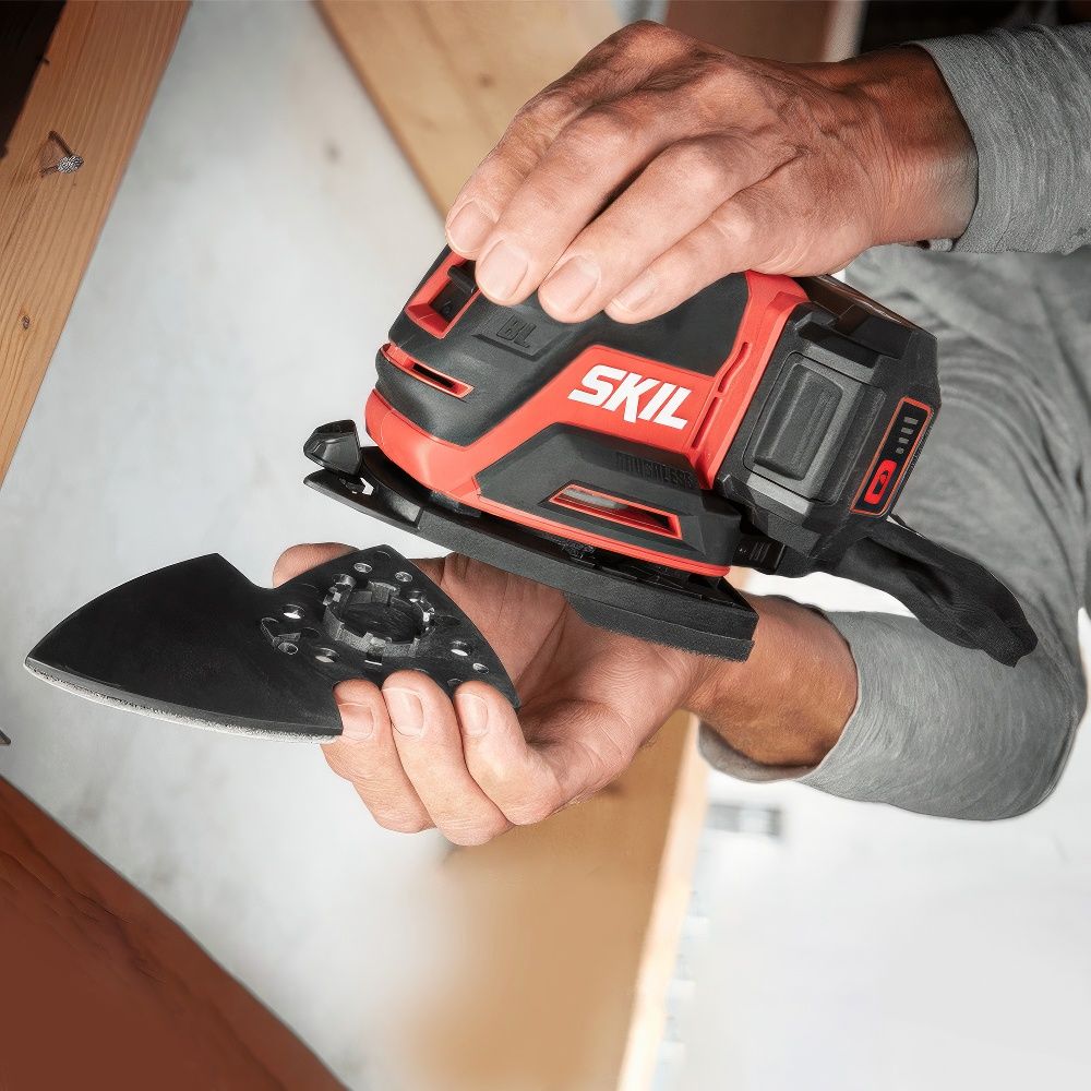 SKIL SR6607 — это многофункциональная аккумуляторная шлифовальная машина с бесщёточным двигателем, предназначенная для шлифовки различных поверхностей: от плоских и угловых до фигурных и труднодоступных участков. Благодаря сменным насадкам в комплекте, вы можете легко справиться с любыми задачами — от обработки широких панелей до шлифовки узких щелей, жалюзи или изогнутых поверхностей.