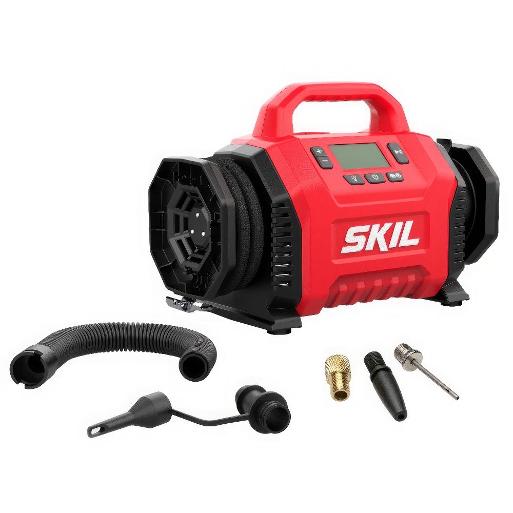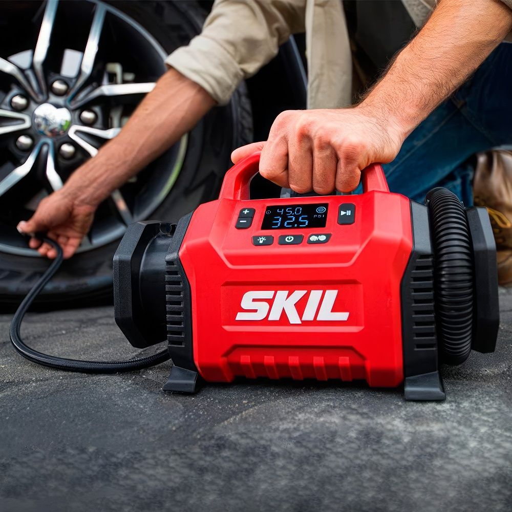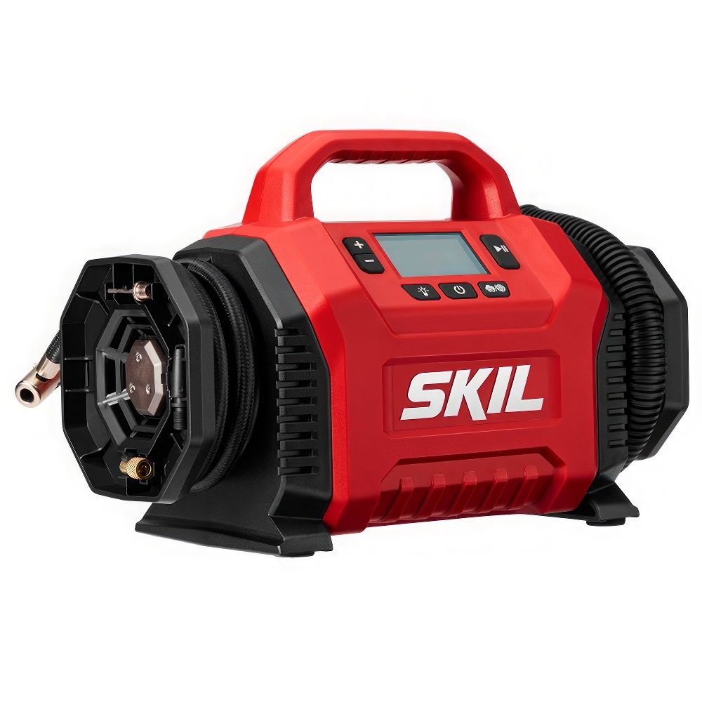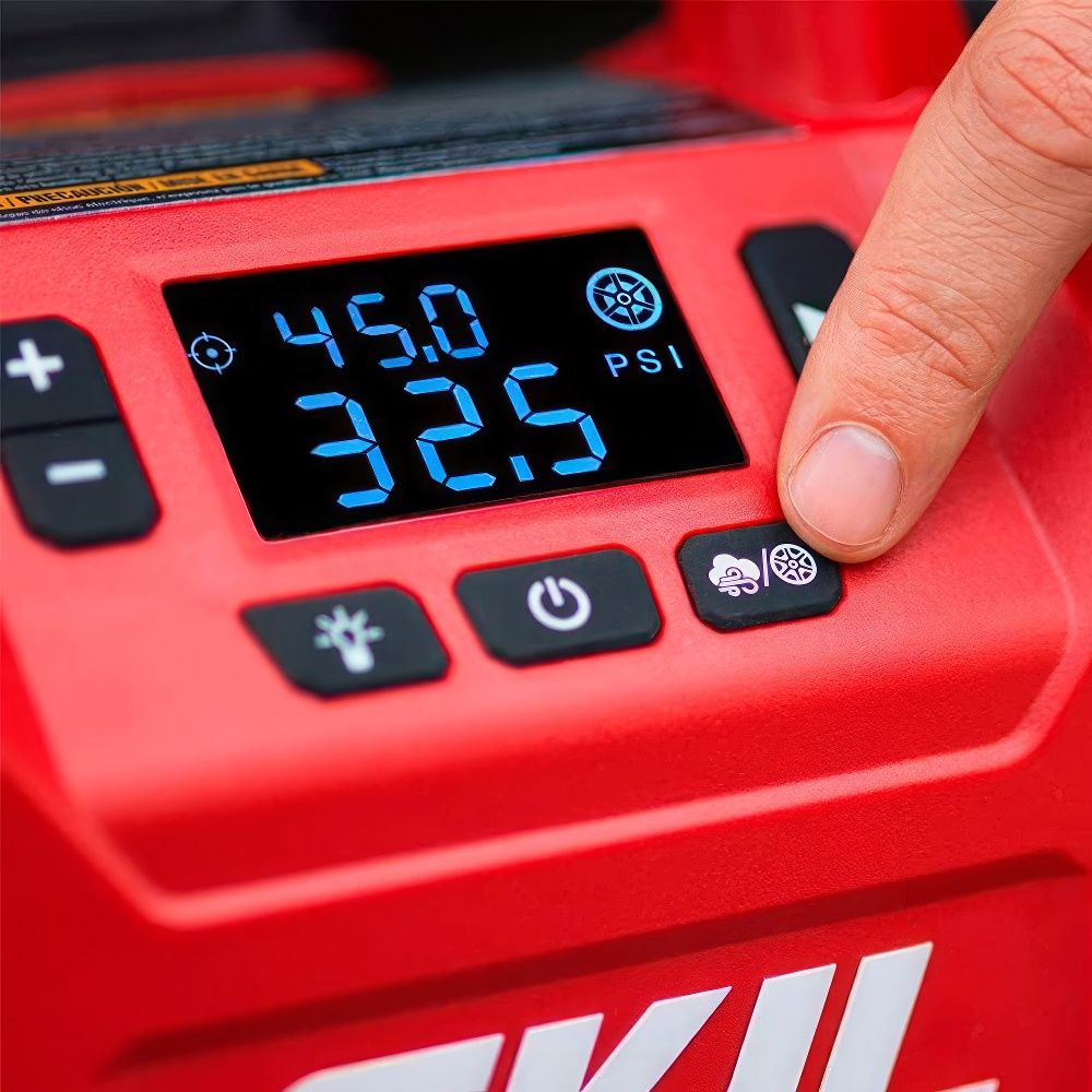 SKIL IF5940 — это компактный и мощный аккумуляторный компрессор, сочетающий в себе два режима работы: высокое давление и большой объём воздуха. Он идеально подходит для накачки автомобильных и велосипедных шин, спортивных мячей, матрасов и других надувных изделий.