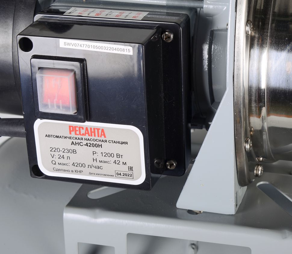 1200 Вт, напор – 42 м, 70 л/мин, гидроаккумулятор – 24 л, насосная часть - нерж.сталь