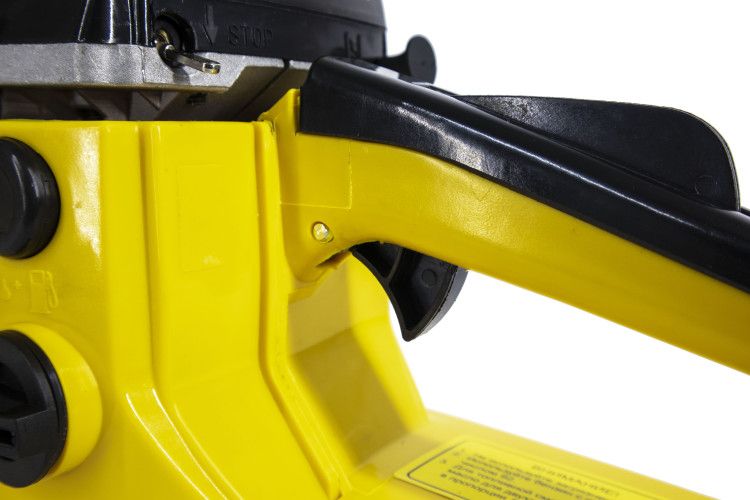 Особое внимание уделено безопасности. За счет специальной кнопки бензиновой цепной пилы обеспечивается блокировка от случайного включения. Благодаря функции торможения двигателя цепь быстро останавливается после выключения инструмента. Для защиты рук предусмотрена антивибрационная система.
