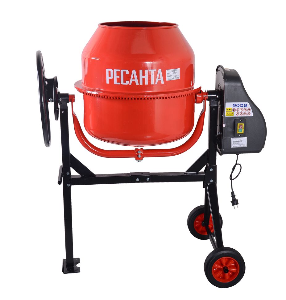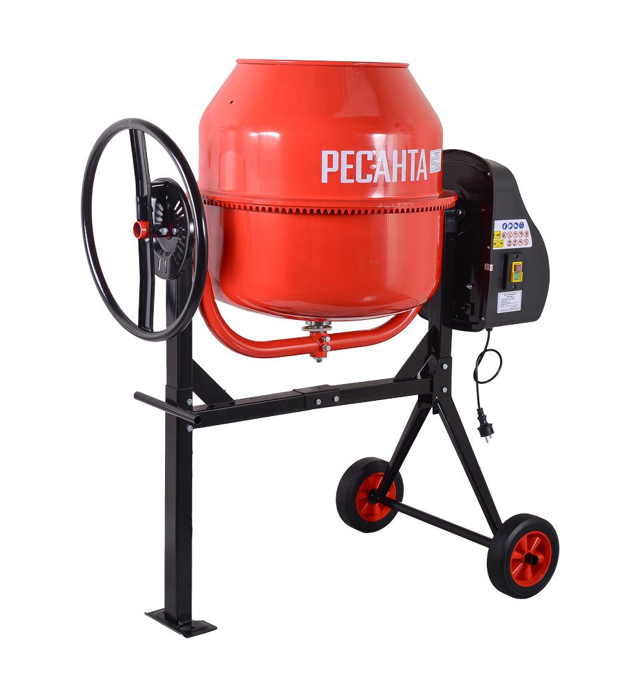 Паспорт изделия, Крепежный комплект, Колесо поворотное, Опора передняя, Опора задняя, Нижняя часть барабана, Кронштейн, Верхняя часть барабана, Корпус с электродвигателем, Рама разборная, Диск-фиксатор угла наклона, Колесо транспортировочное 2 шт., Лопасти 2 шт., Резиновая прокладка, Траверса, Скоба