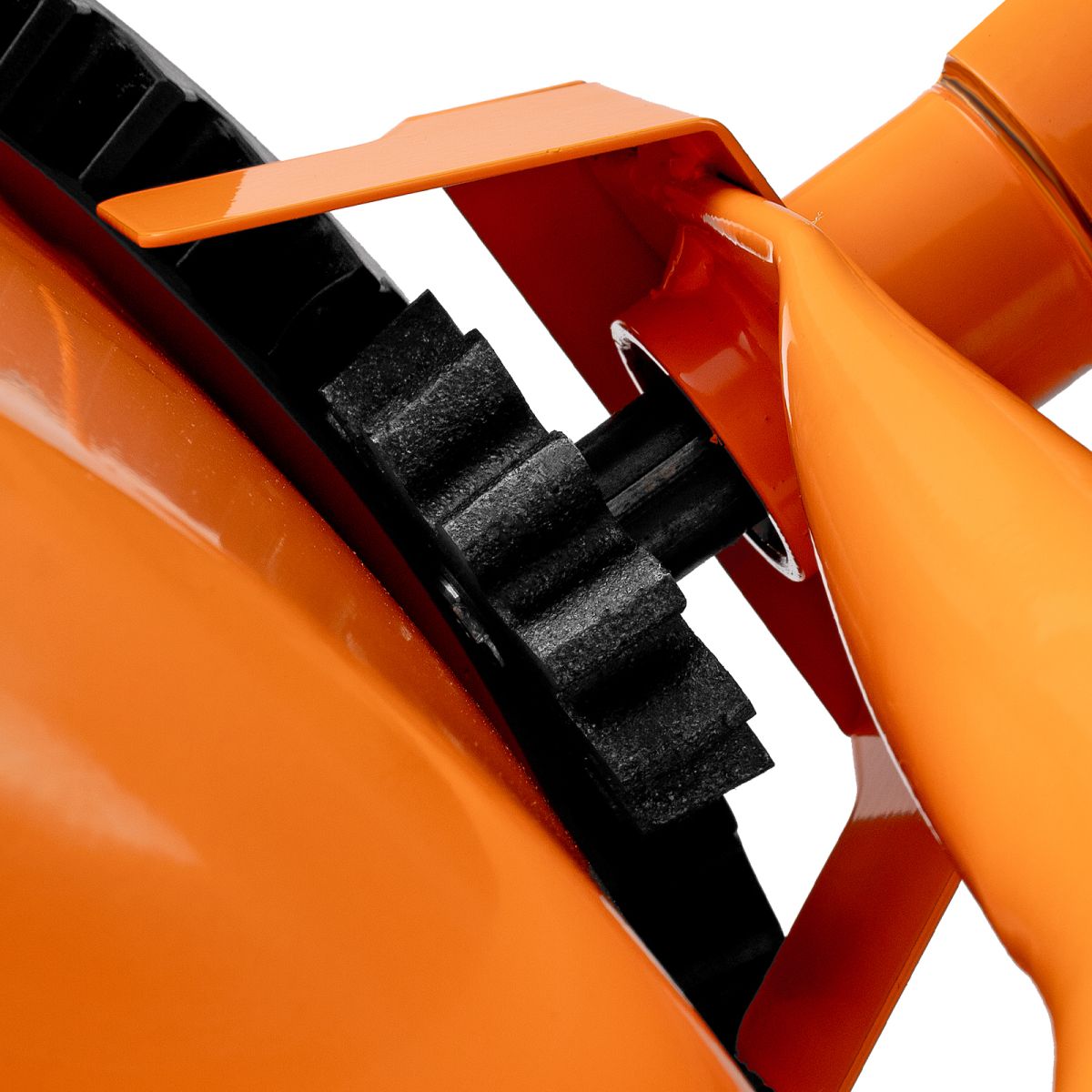 - Удобная загрузка и выгрузка смеси — барабан легко фиксируется в наклонном положении при помощи педали.