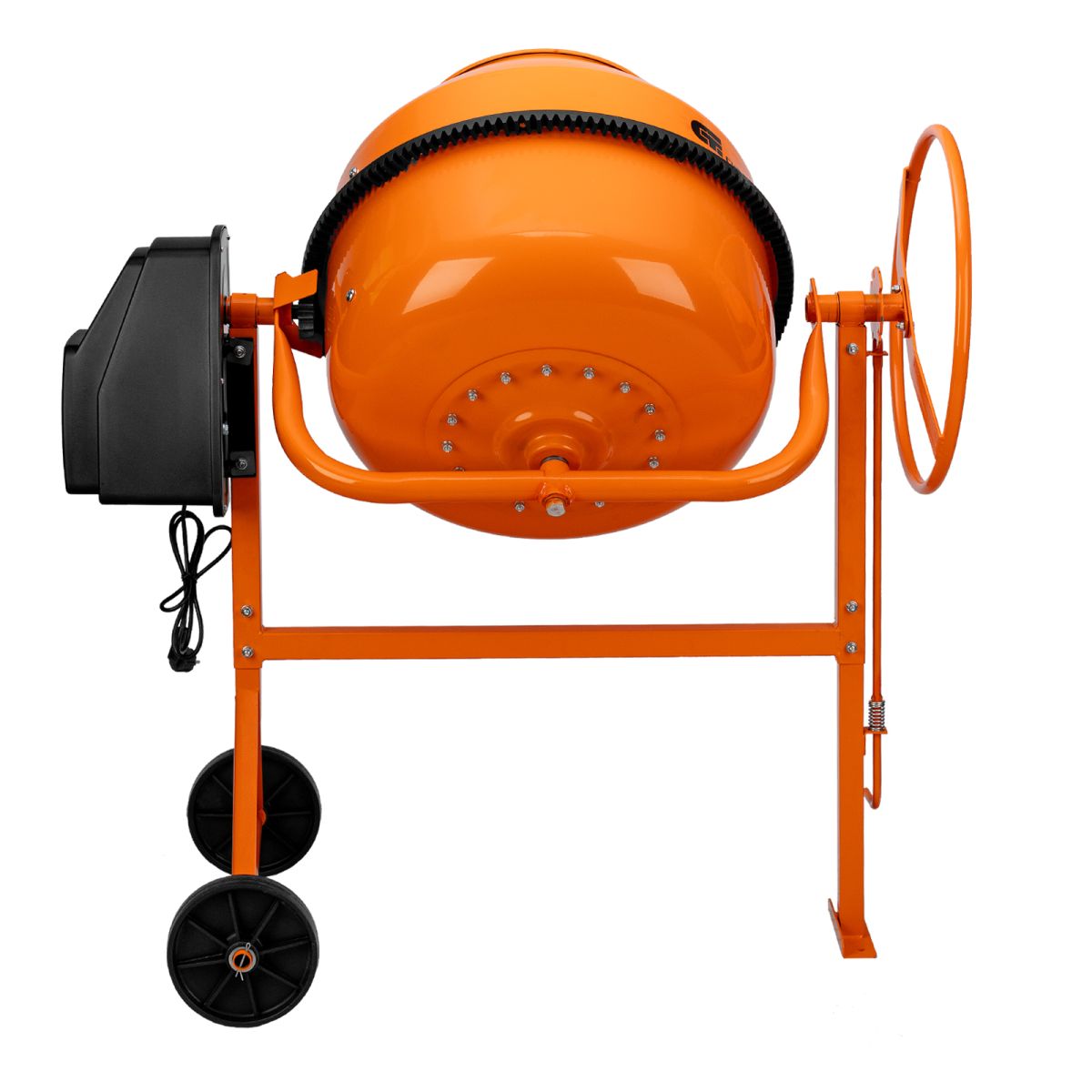 - Продуманная конструкция — увеличенный диаметр колес обеспечивает устойчивость бетоносмесителя во время работы, а также упрощает его перемещение по рабочей площадке.