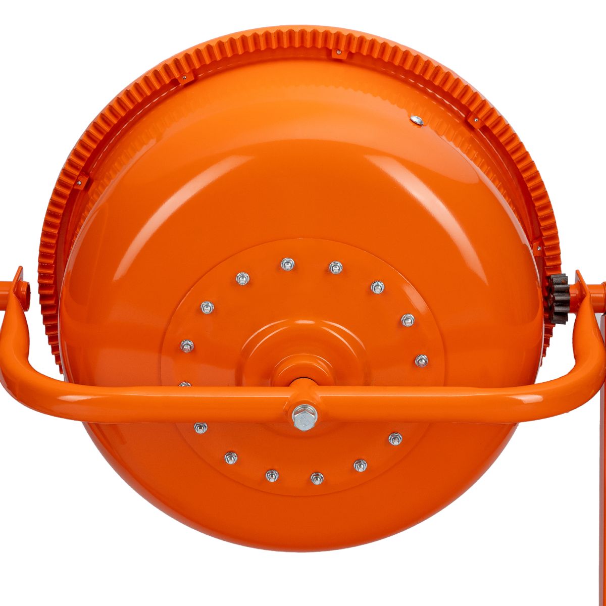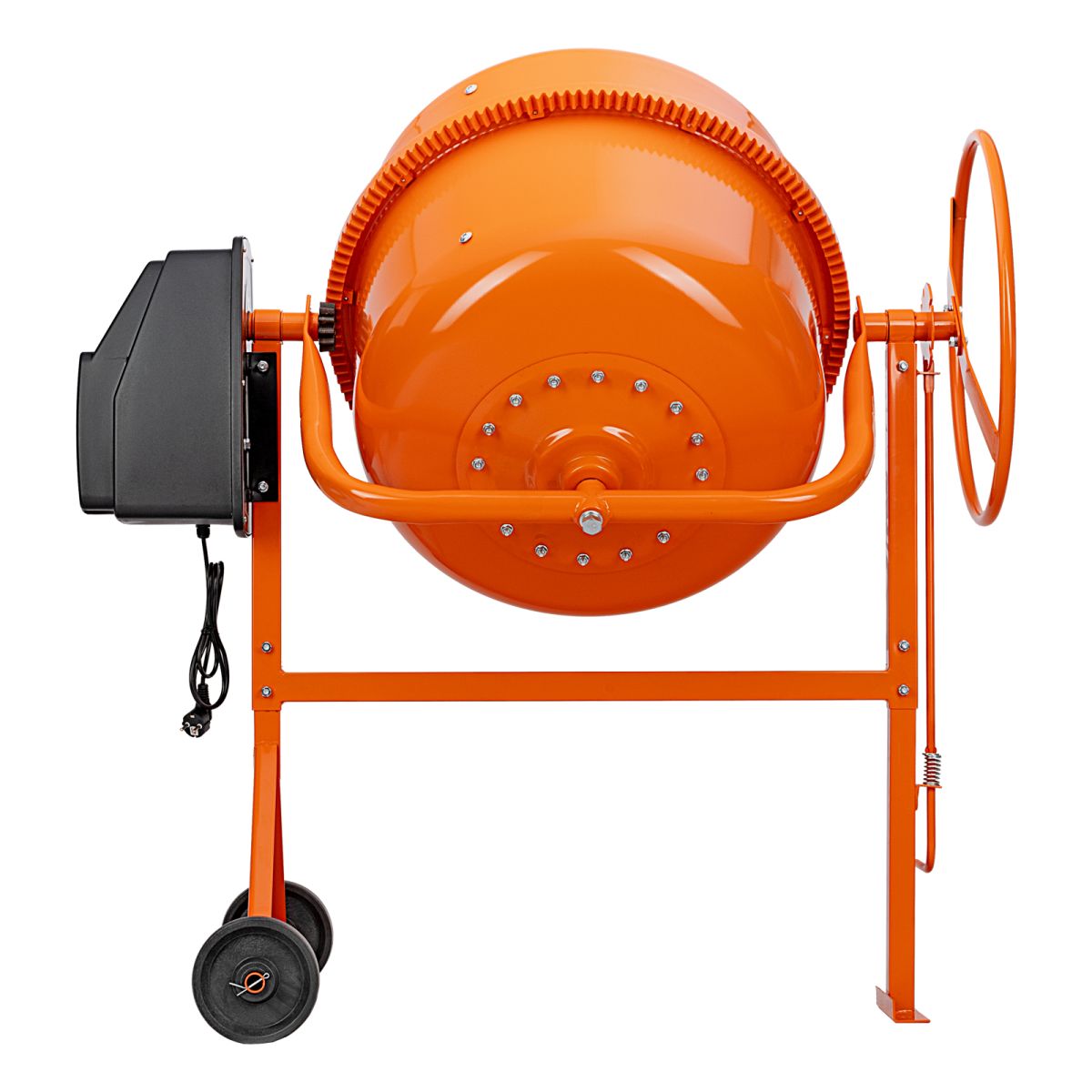 - Удобная загрузка и выгрузка смеси — барабан наклоняется при помощи маховика и легко фиксируется в нужном положении.