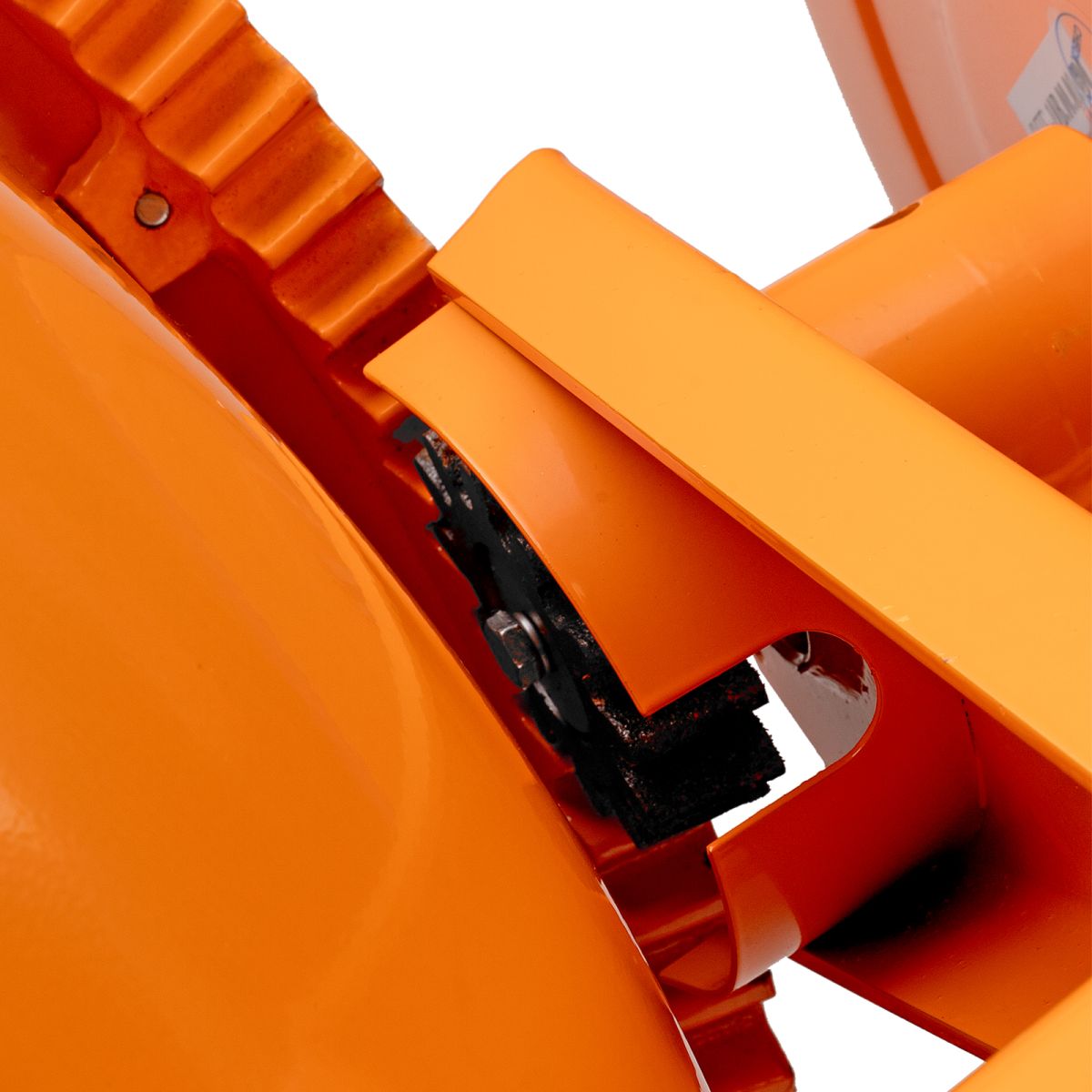 - Безопасная работа — стальной вертикальный элемент траверсы защищает привод бака от затягивания посторонних предметов, выключатель закрыт крышкой для предотвращения случайного запуска.
