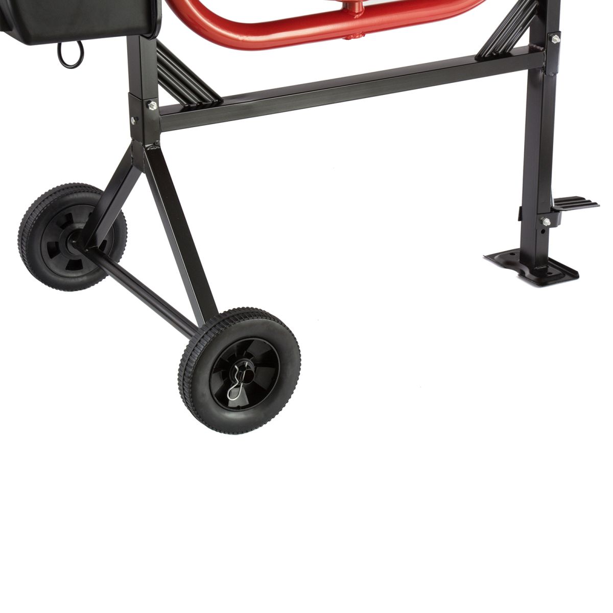 - Легкая транспортировка — двухкомпонентные колеса с увеличенным диаметром позволяют без труда переместить бетоносмеситель в нужное место.