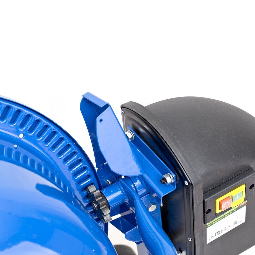 - Удобная транспортировка — крупные колеса упрощают перемещение бетоносмесителя по рабочей площадке.