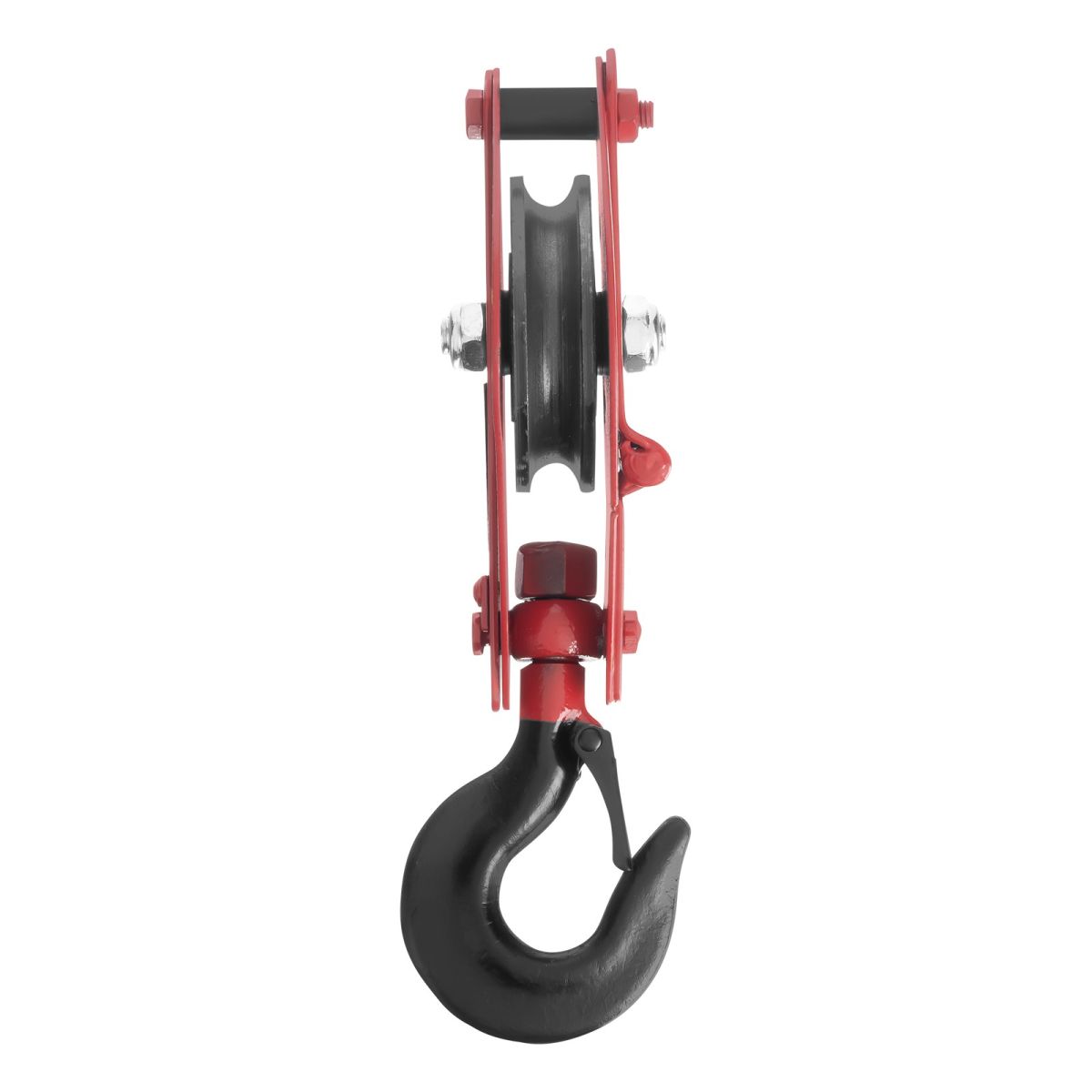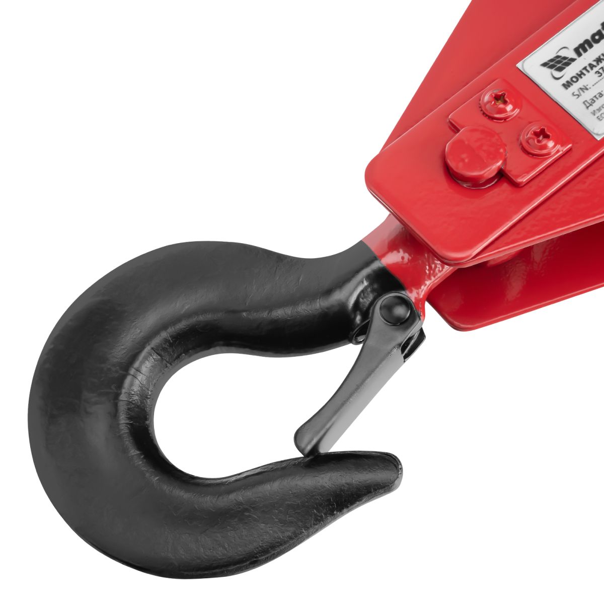 - Безопасная работа — кованая предохранительная защелка на крюке обеспечивает надежную фиксацию груза.