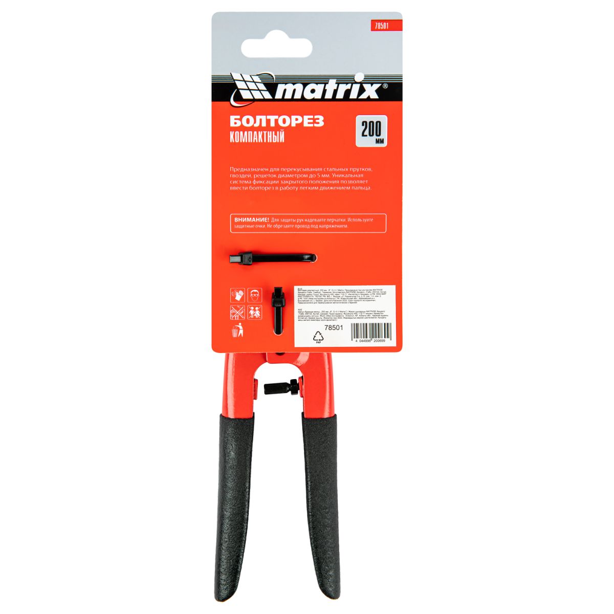 Компактный болторез Matrix 78501 длиной 200 мм (8″), из стали CrV, предназначен для перекусывания гвоздей, болтов, проволоки различной твердости, а также металлических стержней, заклепок, цепей и решеток толщиной до 5 мм. Благодаря компактности и малому весу 274 г оптимален для работы в труднодоступных местах. Инструмент рекомендован профессиональным работникам для проведения слесарных, строительных, спасательных работ.
