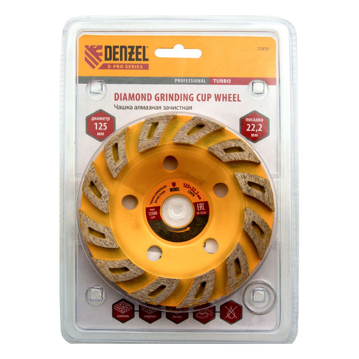 Чашка алмазная зачистная, 125 мм, Турбо Denzel