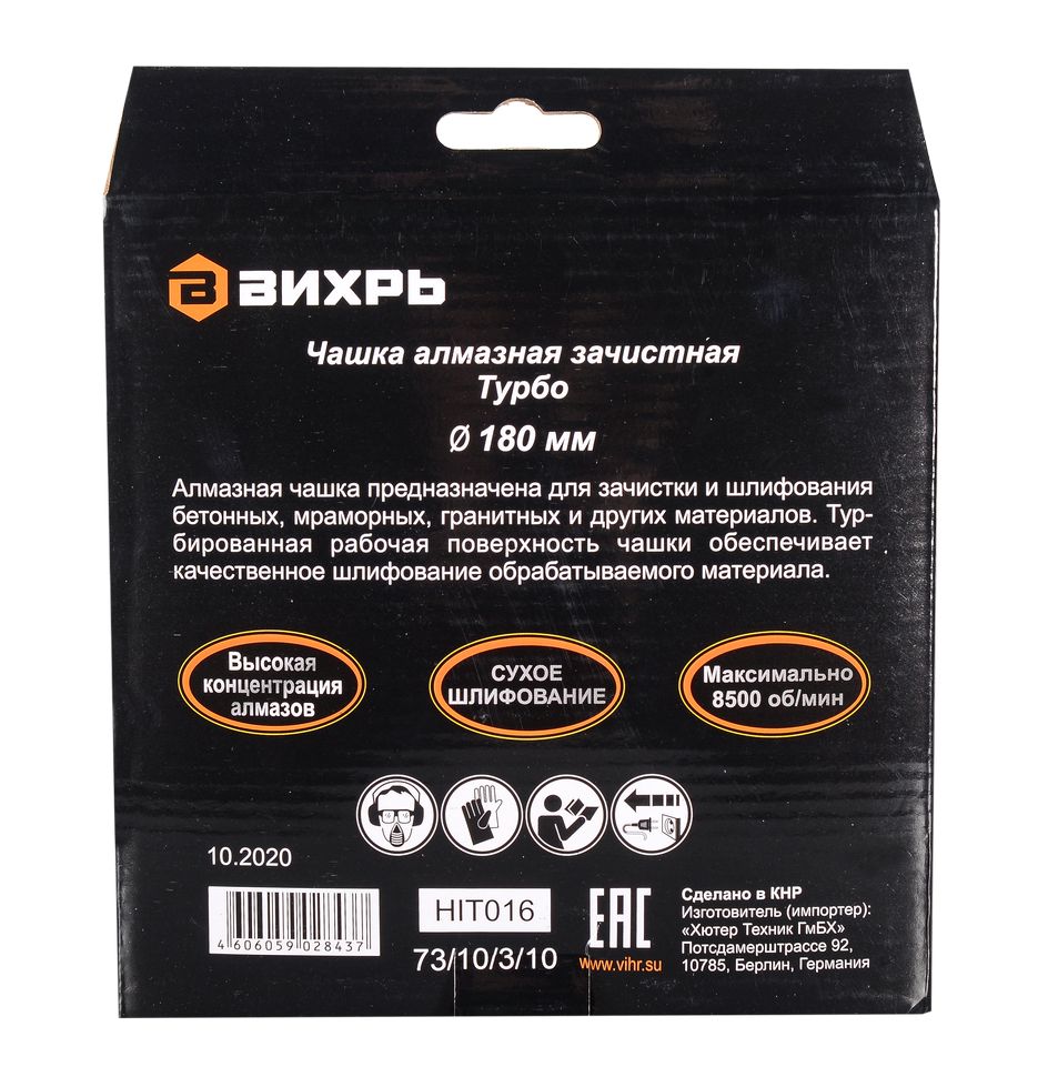 Чашка алмазная зачистная, 180 мм, Турбо Вихрь
