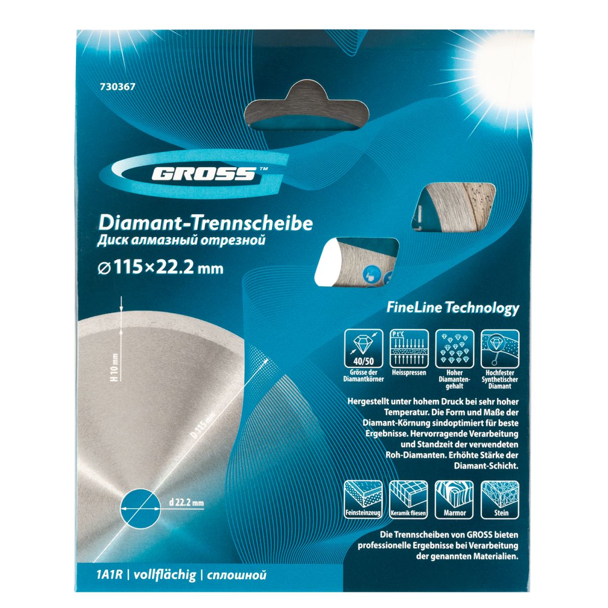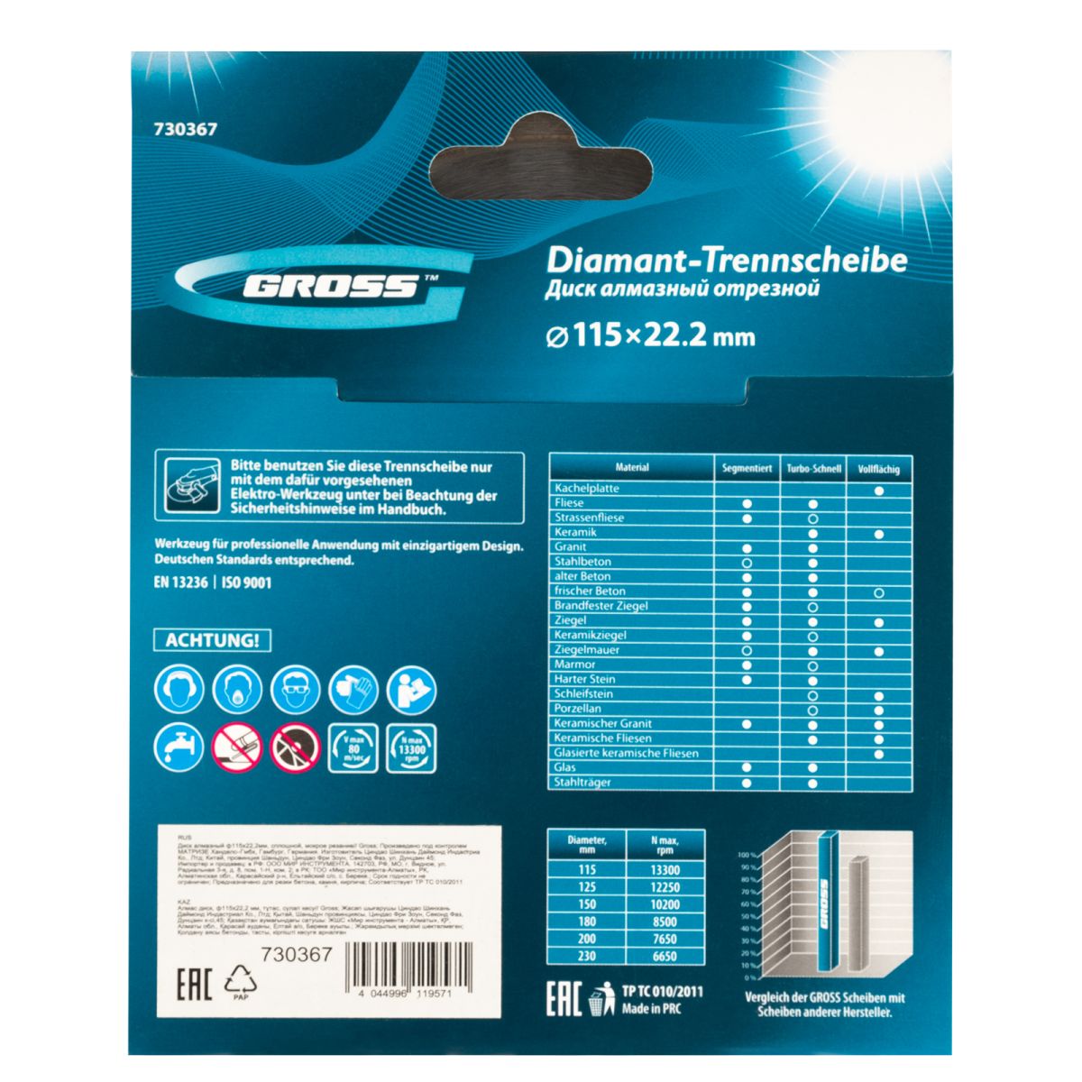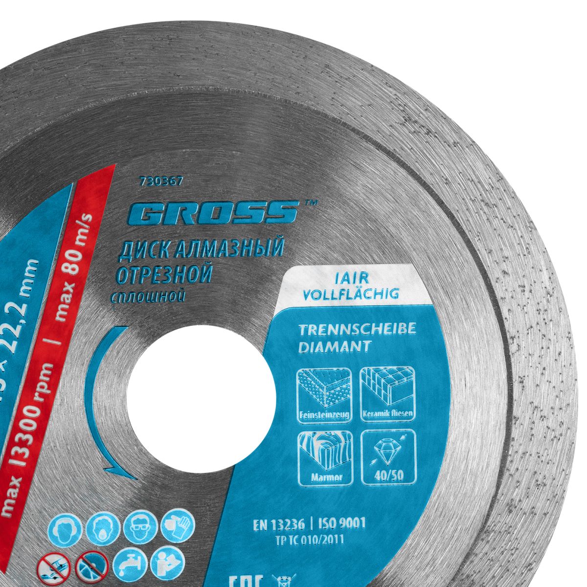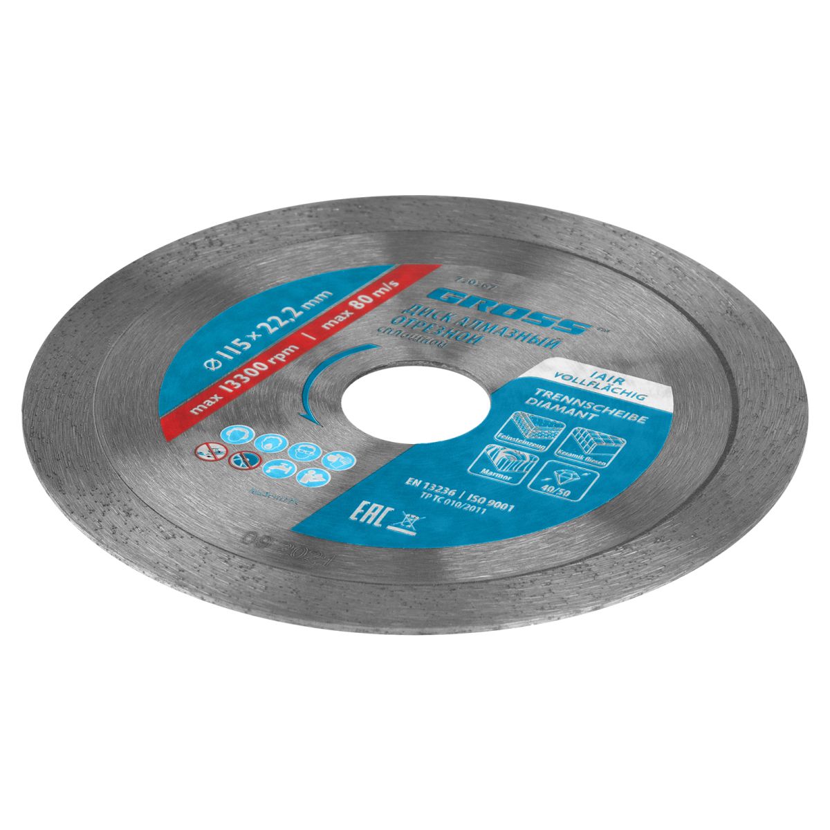 Диск алмазный, 115 х 22.2 мм, сплошной, мокрая резка Gross