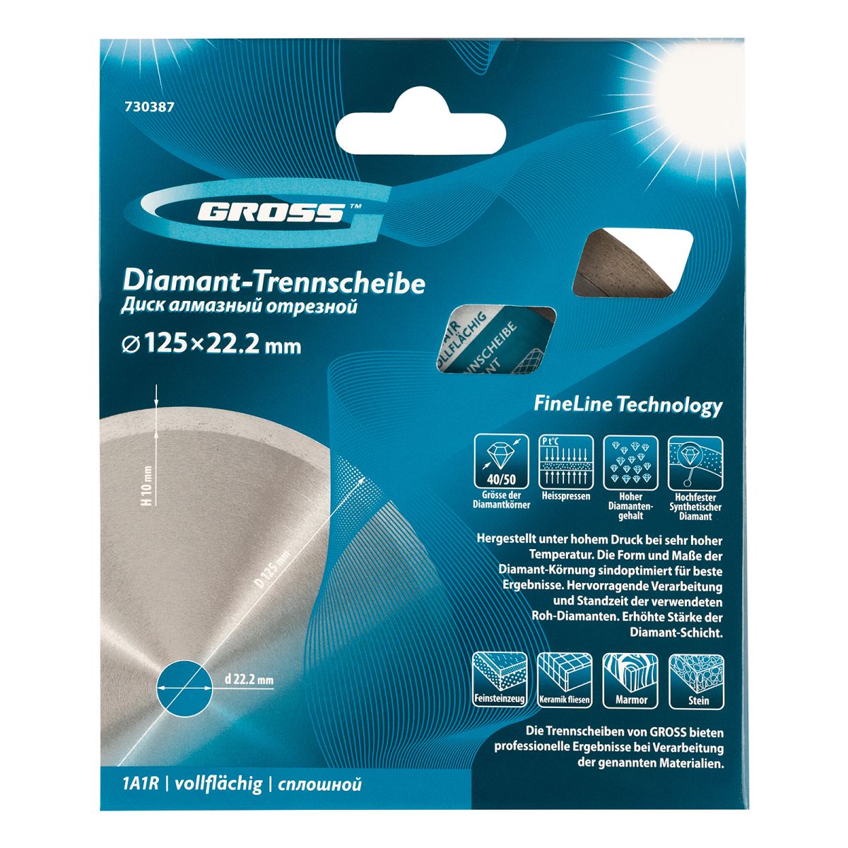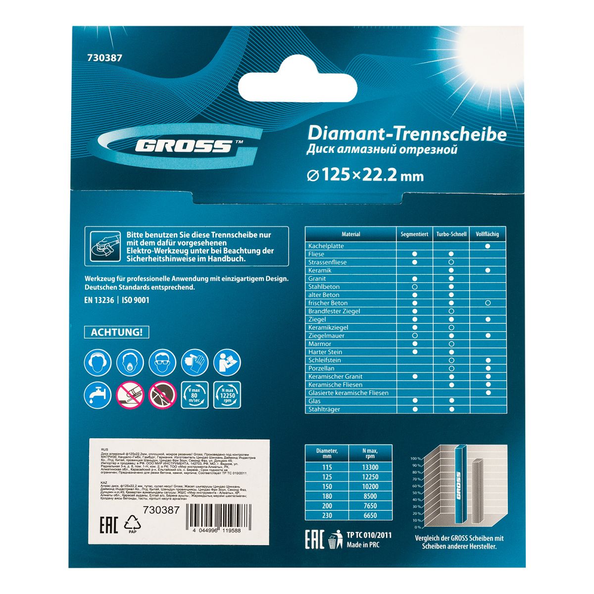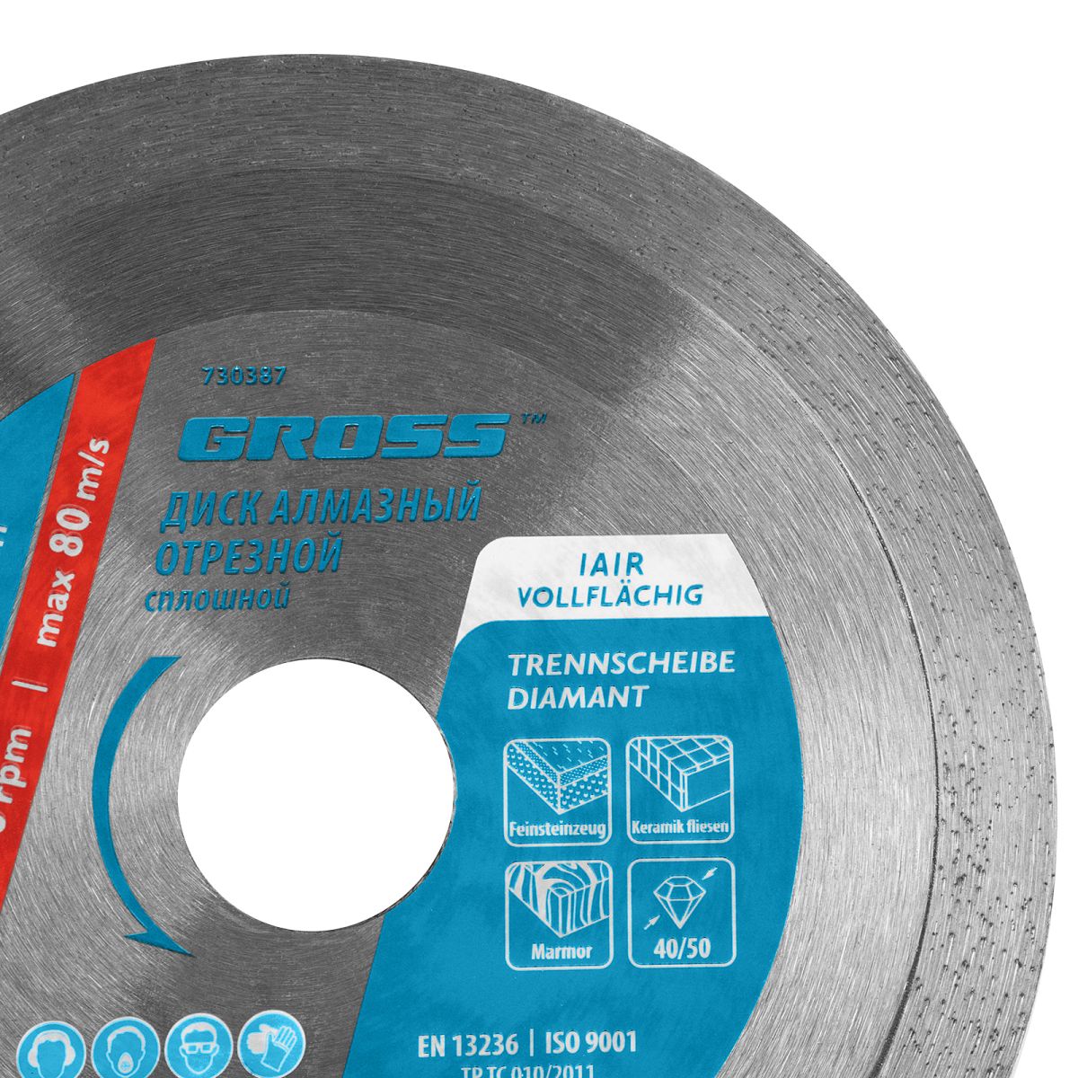Диск алмазный, 125 х 22.2 мм, сплошной, мокрая резка Gross