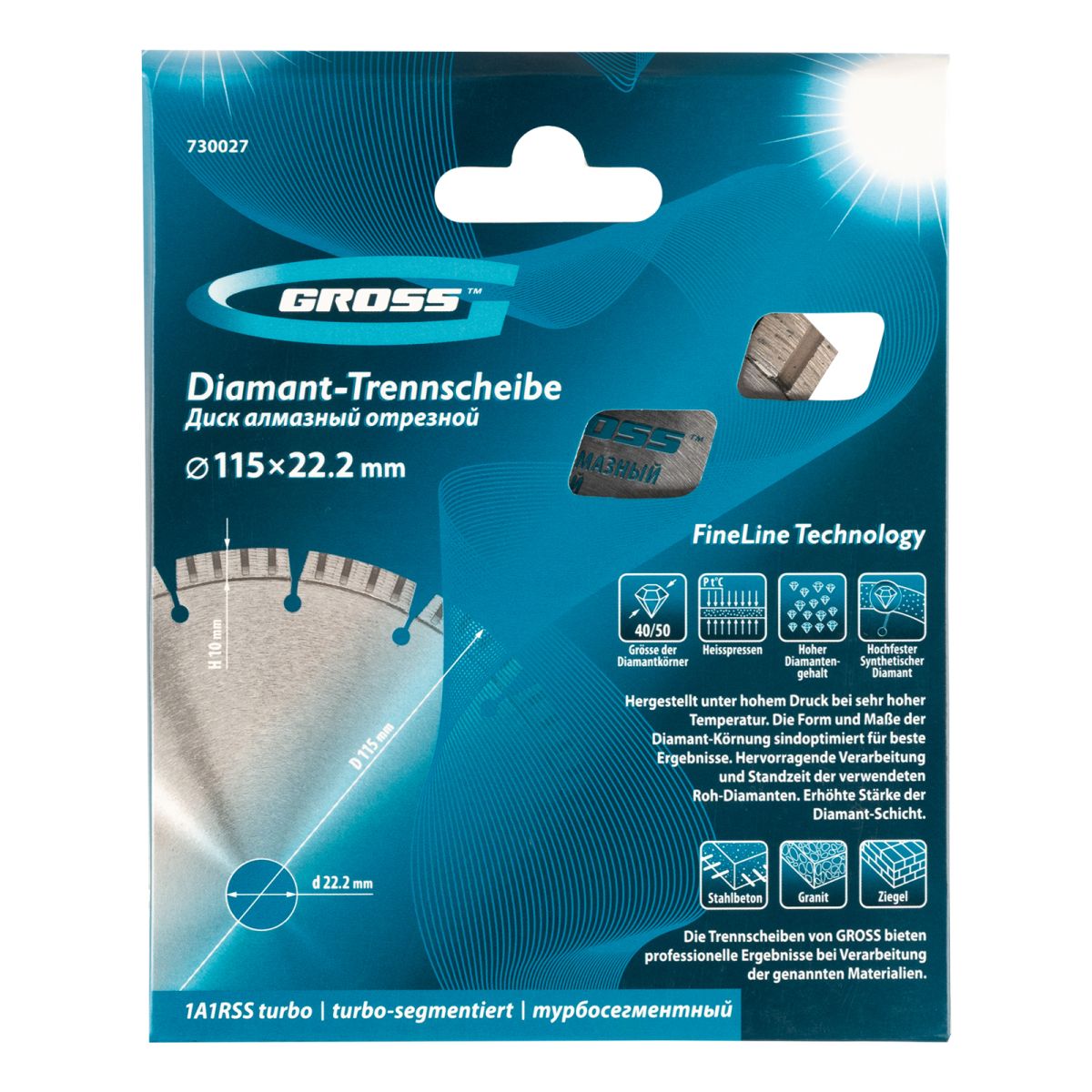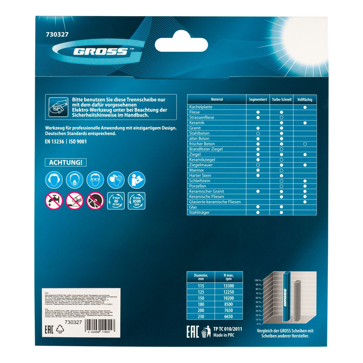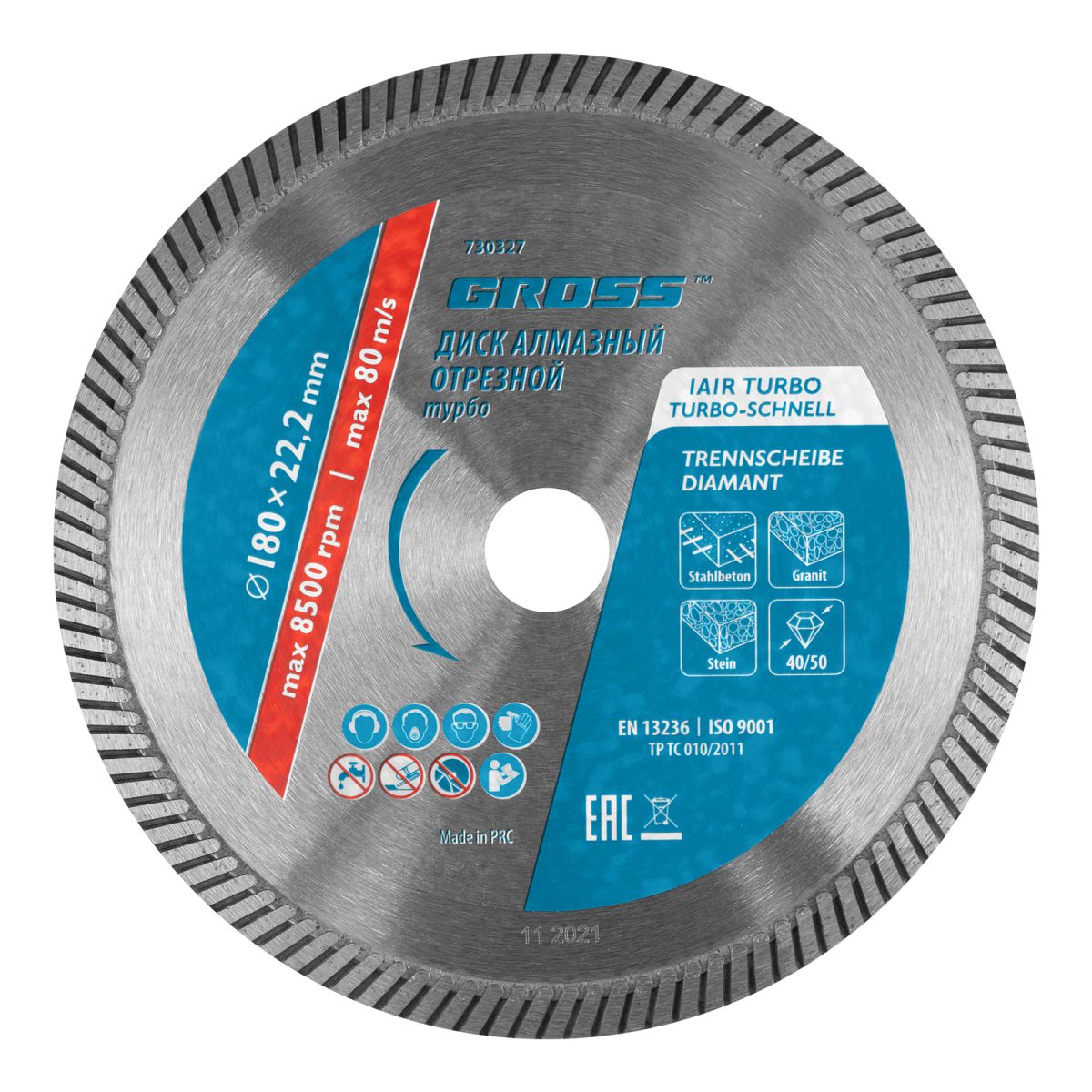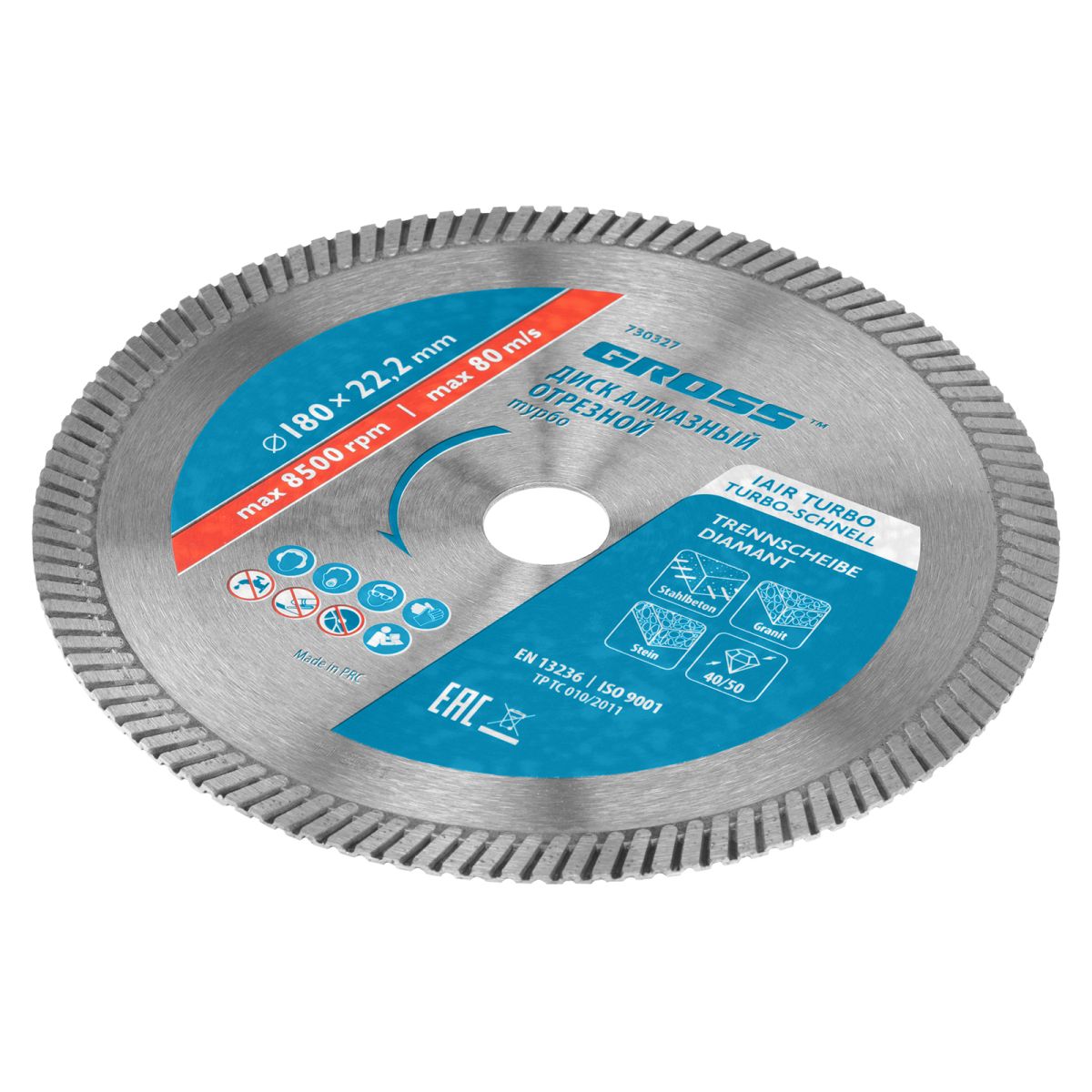 Диск алмазный, 180 х 22.2 мм, турбо, сухая резка Gross