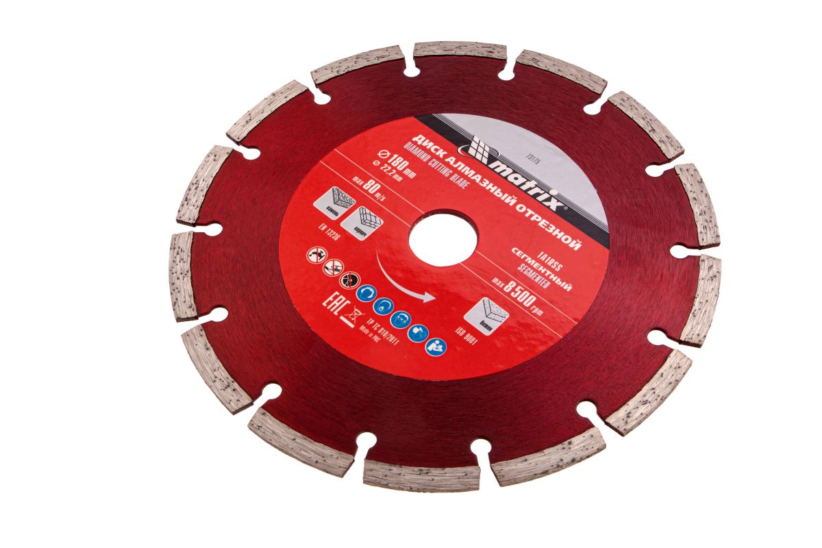 Алмазный отрезной сегментный диск Matrix 73175 диаметром 180 х 22,2 мм предназначен для сухой резки натурального и искусственного камня, кирпича, свежего и твердого бетона. Применяется с углошлифовальными машинами соответствующего типоразмера. Благодаря высокой скорости реза диск позволяет выполнять работы большого объема. Он пригодится на небольших строительных площадках и будет идеальным помощником при решении бытовых задач.