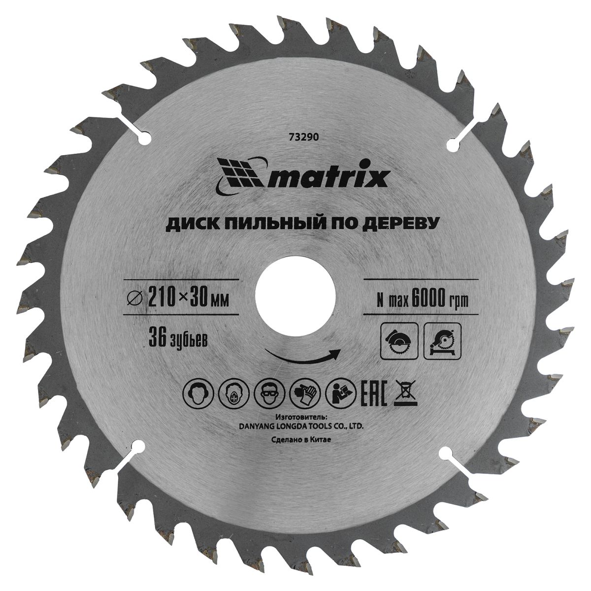 Пильный диск по дереву Matrix 73290 диаметром 210 х 30 мм, с 36 зубьями, — оснастка для циркулярных и торцовочных пил с соответствующим посадочным и внешним диаметром. Используется для продольного/поперечного реза материалов из мягкой и твердой древесины, ДСП, ДВП, фанеры, столярных плит. Диск подходит для бытового и профессионального применения.