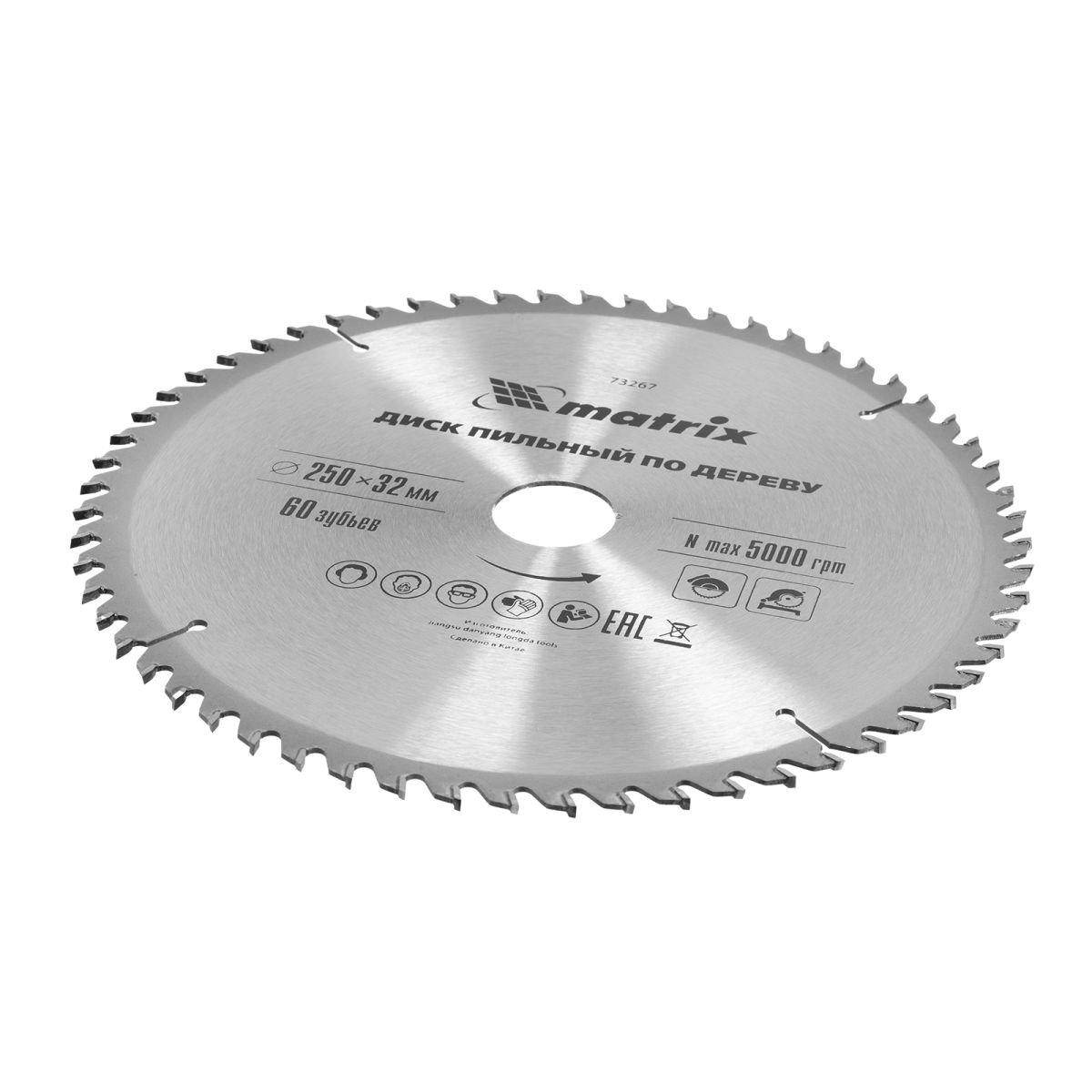 Пильный диск по дереву Matrix 73267 диаметром 250 х 32 мм, с 60 зубьями, — оснастка для циркулярных и торцовочных пил с соответствующим посадочным и внешним диаметром. Используется преимущественно для поперечного реза материалов из мягкой и твердой древесины, ДСП, ДВП, фанеры, столярных плит. Диск подходит для бытового и профессионального применения.