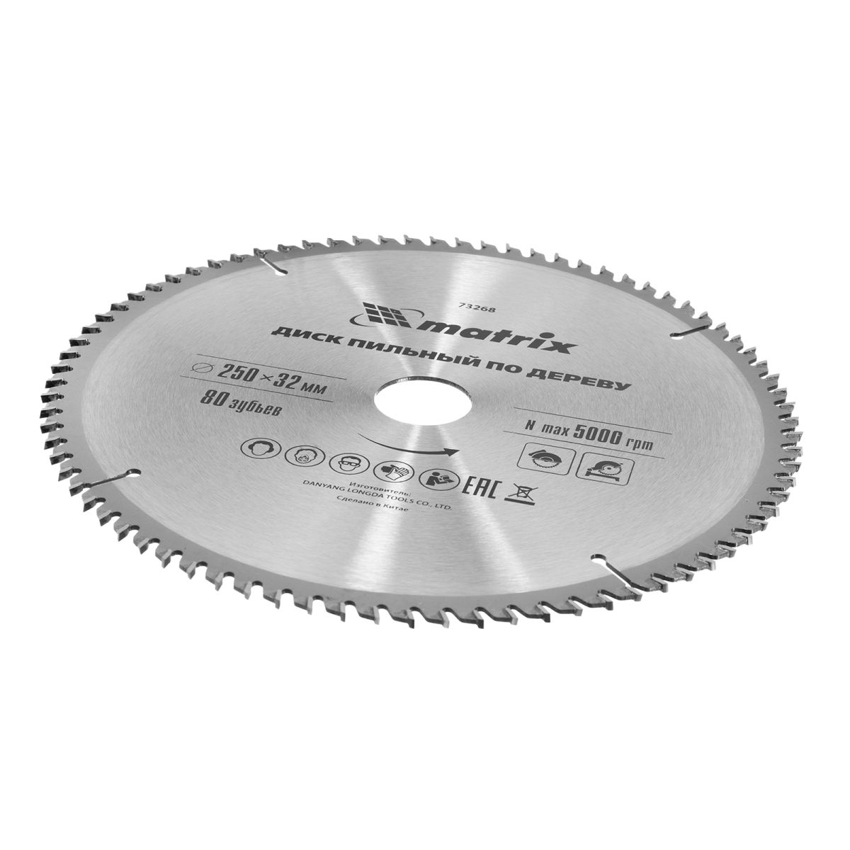 Пильный диск по дереву Matrix 73268 диаметром 250 х 32 мм, с 80 зубьями, — оснастка для циркулярных и торцовочных пил с соответствующим посадочным и внешним диаметром. Используется преимущественно для поперечного реза материалов из мягкой и твердой древесины, ДСП, ДВП, фанеры, столярных плит. Диск подходит для бытового и профессионального применения.