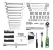 Ключ трещoточный - 1 штУдлинитель - 2 штПереходник на Вороток Т-образный - 1 штОтвертка-держатель - 1 штКардан - 1 штГоловки 8, 9, 10, 11, 12, 13, 14, 15, 17, 19, 22, 24, 27 - 16 штГоловки свечные 16, 21 - 2 штКлючи комбинированные - 10, 12, 13, 14, 15, 17 - 6 штПереходник - 2 штБиты-вставки SL, PH, T - 14 штОтвертки SL, PH - 5 штПлоскогубцы - 1 штМолоток - 1 штКлещи - 1 штКлючи имбусовые 1.5, 2, 2.5, 3 - 4 штКейс - 1 штМолоток - 1 штПлоскогубцы - 1 штТрещотка - 1 шт