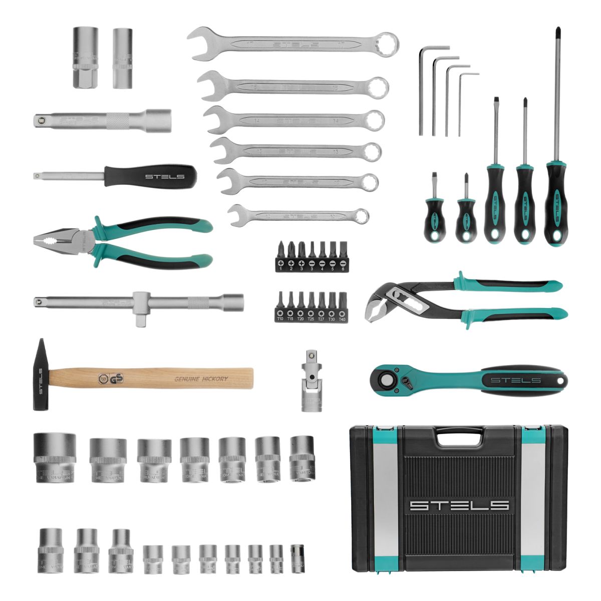 Набор инструментов Stels 14113 в ударопрочным пластиковом кейсе состоит из 58 предметов с присоединительными квадратами 1/2″, из стали CrV и S2, и предназначен для выполнения слесарно-монтажных работ. Включает инструменты для монтажа и демонтажа резьбовых соединений, захвата и удержания деталей, а также выполнения ударных работ. Удлинители и вороток облегчают работу в труднодоступных местах. Набор предназначен для профессионального использования в автомастерской, будет полезен и для решения бытовых задач.