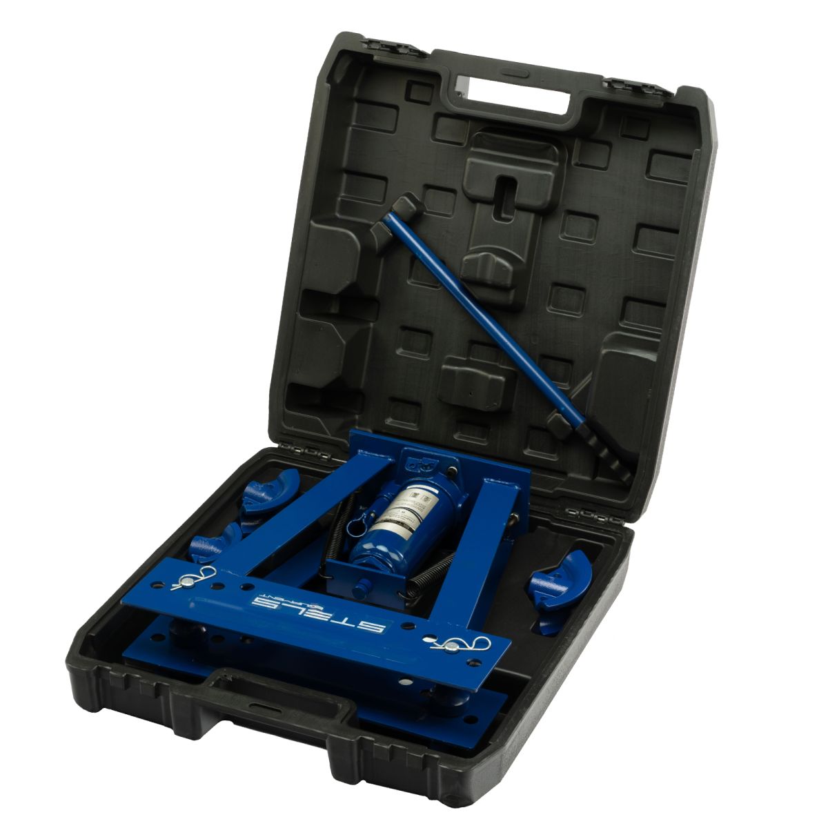 - Удобная транспортировка и хранение — трубогиб с башмаками поставляется в пластиковом кейсе.