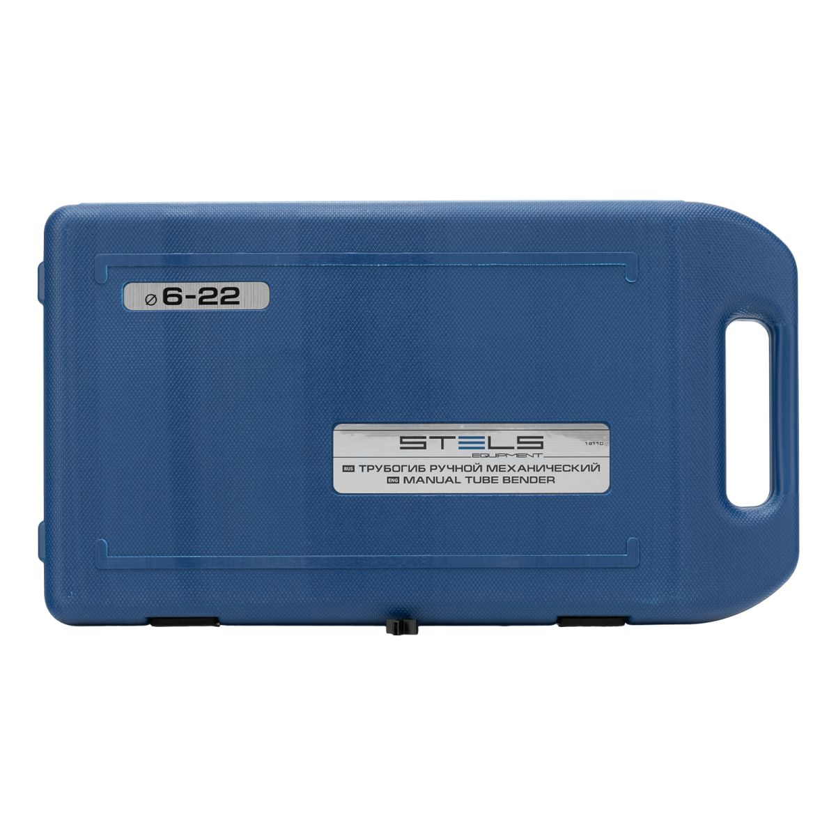 Ручной механический трубогиб Stels 18110 с башмаками 1/4"–7/8", в пластиковом кейсе, используется для установки любых типов трубопроводов. Обеспечивает точный и плавный изгиб отожженных труб из меди с покрытием и без, а также комбинированных металлопластиковых. Способен сгибать трубы под углом до 90°.