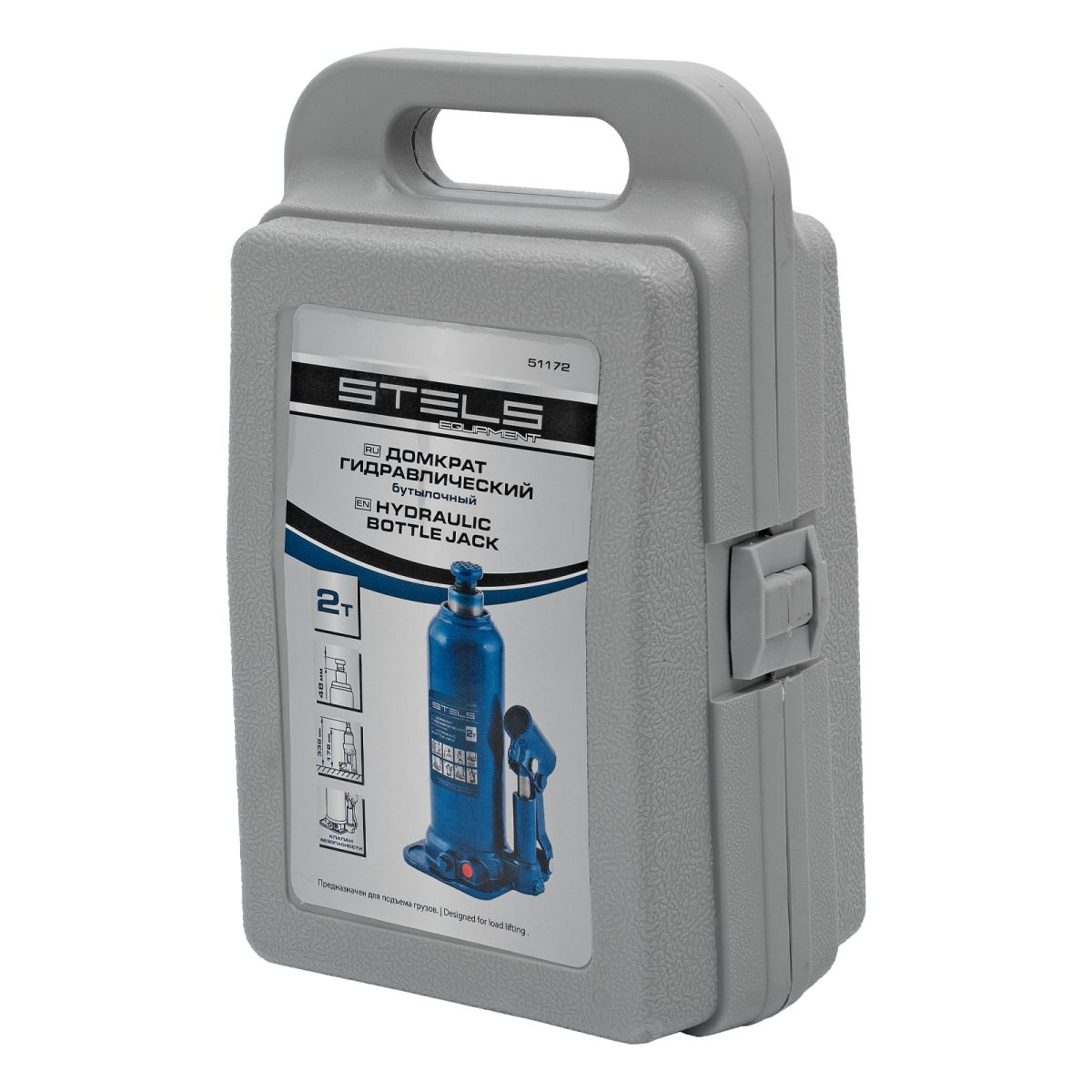 Гидравлический бутылочный домкрат Stels 51172 в пластиковом кейсе предназначен для поднятия грузов весом до 2 т на высоту 178-338 мм. Он не занимает много места и легко помещается в багажник, поэтому его можно брать с собой в дорогу или хранить в гараже. Используется для самостоятельного ремонта авто, также подходит для профессионального применения на станциях технического обслуживания.