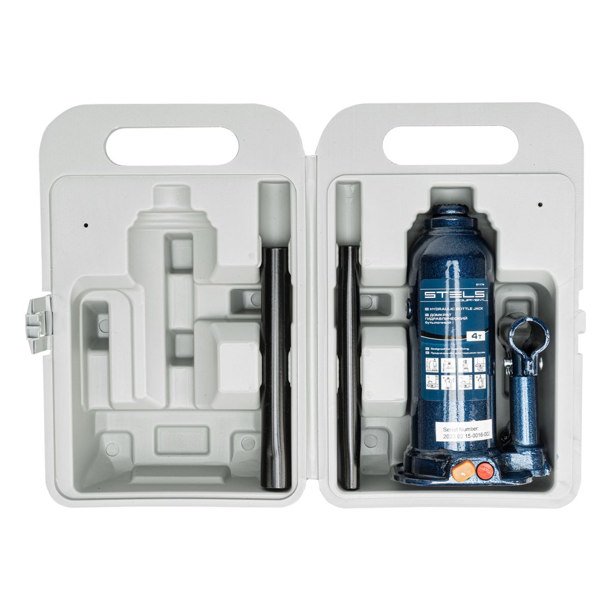 - Удобное хранение и транспортировка — домкрат поставляется в пластиковом кейсе.