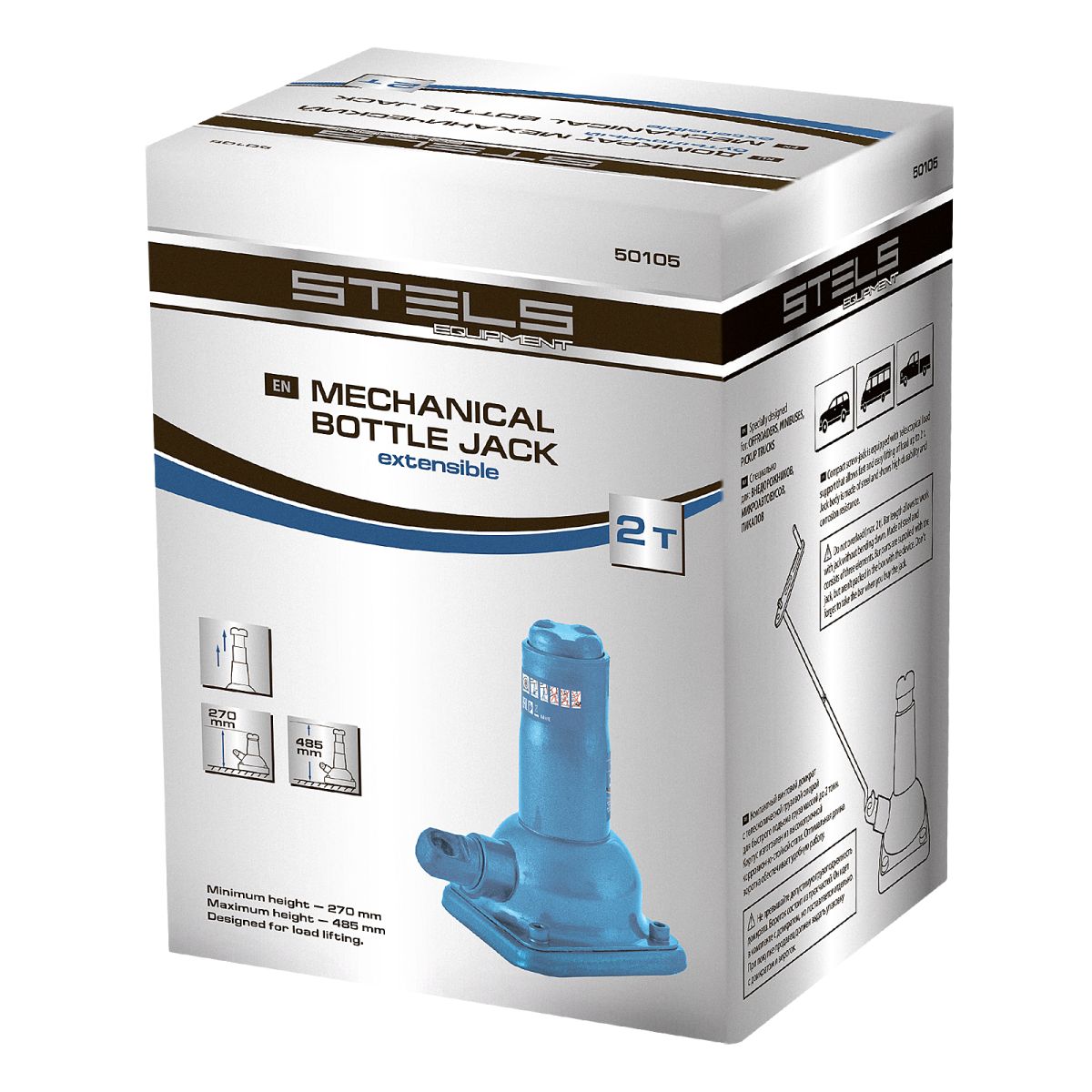 Механический бутылочный домкрат Stels 50105 состоит из 2 частей: самого домкрата и ручки, имеет телескопический шток и используется для быстрого подъема грузов массой до 2 т на высоту от 210 до 495 мм. Домкрат предназначен для самостоятельного применения, будет полезен владельцам легковых автомобилей в дороге и гараже.