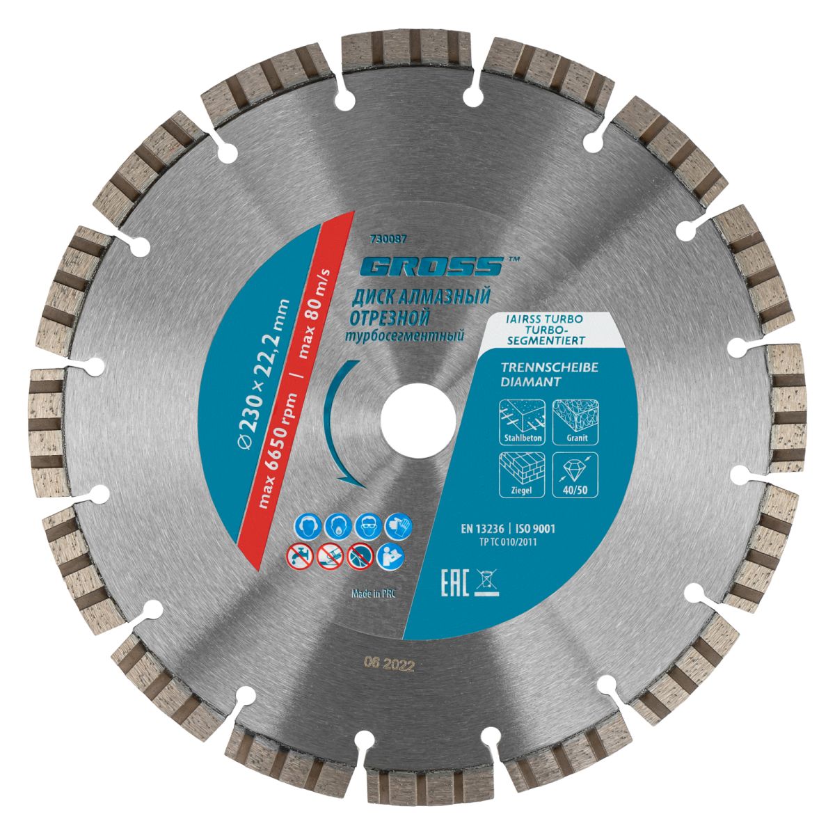 - Надежная фиксация алмазного слоя — лазерная приварка сегментов обеспечивает диску высокую стойкость к нагрузкам.