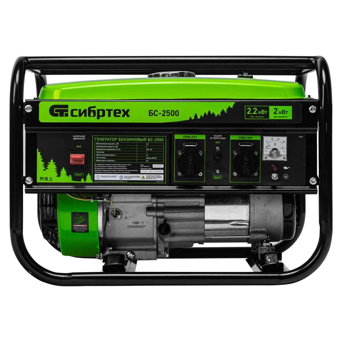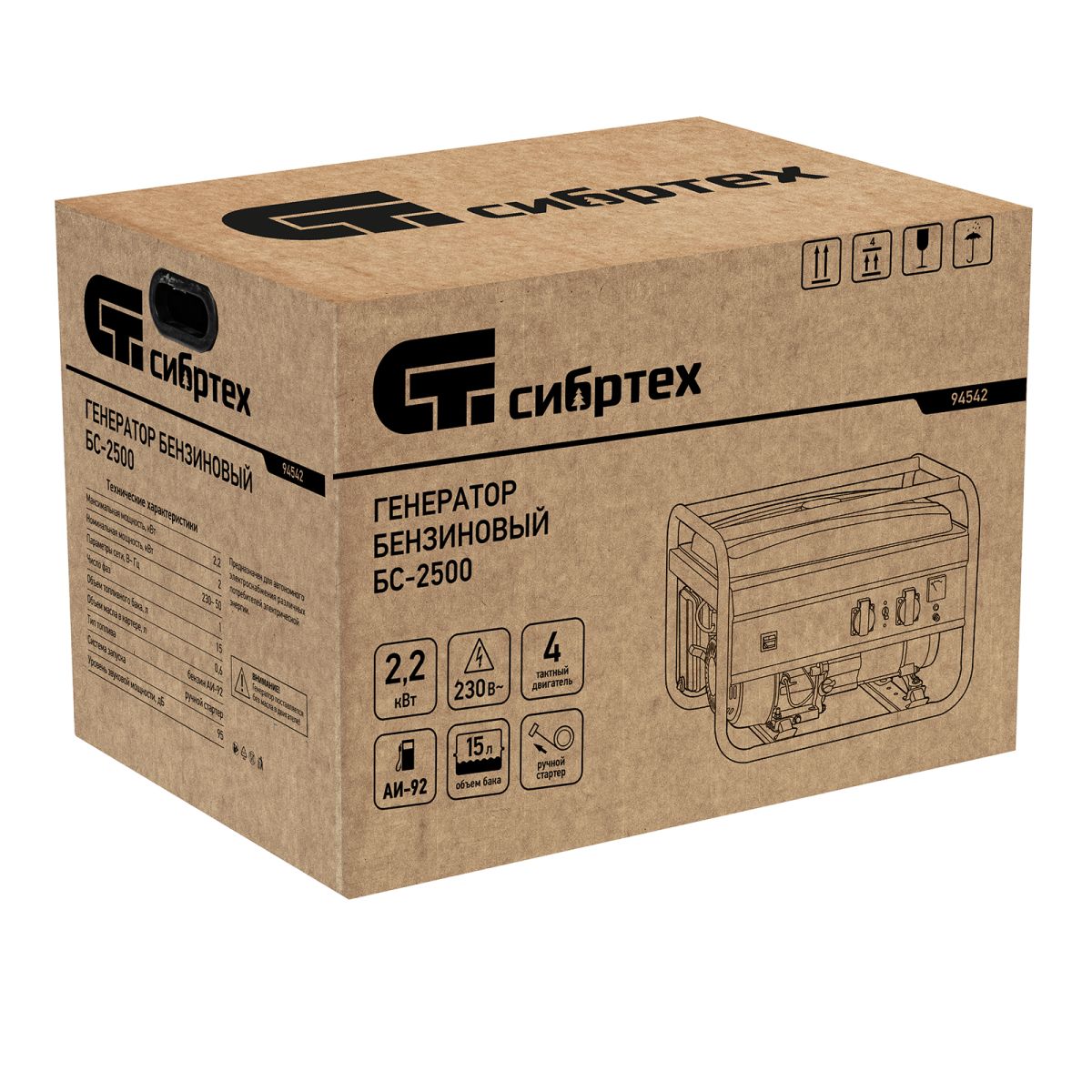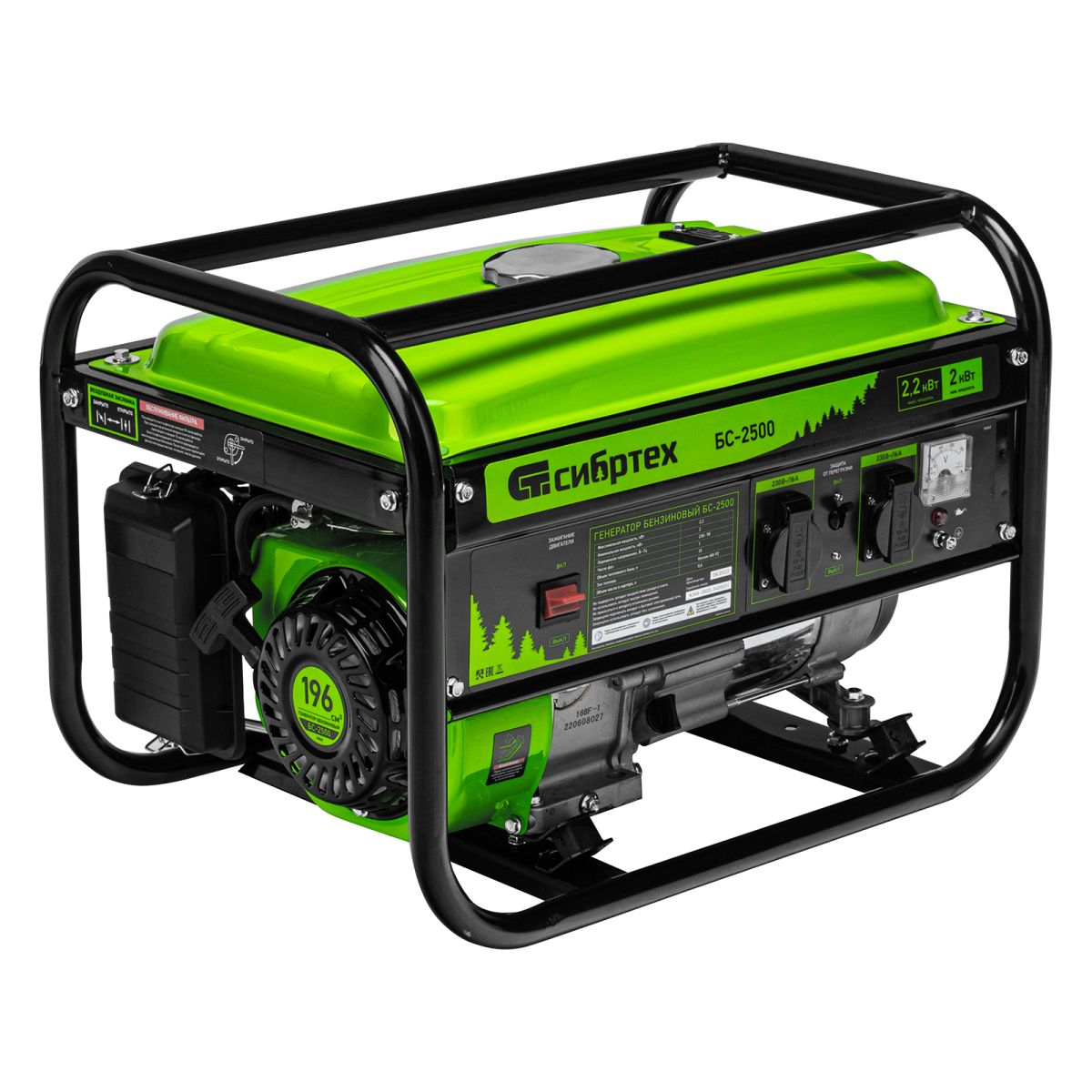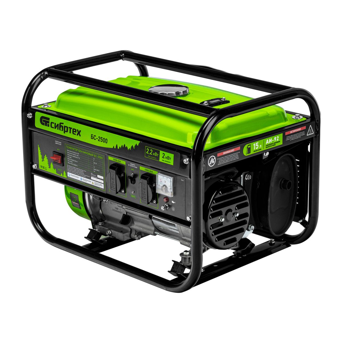 Бензиновый генератор Сибртех БС-2500 94542 на 230 В, максимальной мощностью 2,2 кВт, с 4-тактным двигателем и баком объемом 15 л, идеально подходит для использования на даче, на природе или в мастерской. Небольшой вес 34,5 кг и компактность позволяют легко перевозить и брать его с собой. Мощности 2 кВт достаточно для одновременного подключения холодильника и микроволновой печи.