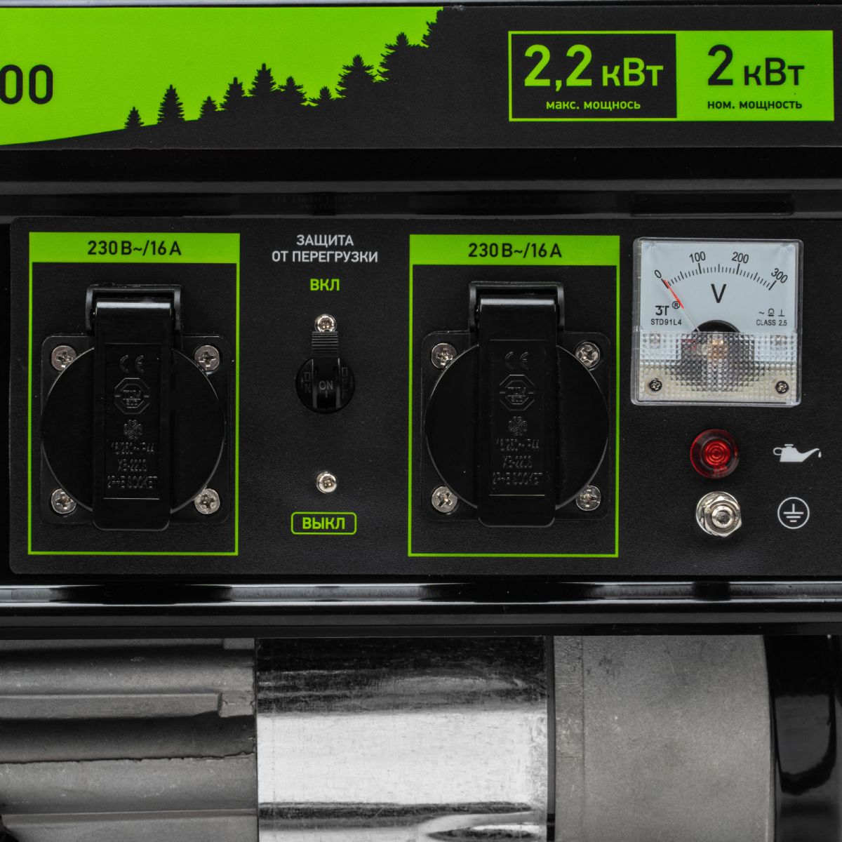 - Контроль рабочих параметров — встроенный вольтметр позволяет отслеживать напряжение в сети, а топливный индикатор — уровень бензина в баке.