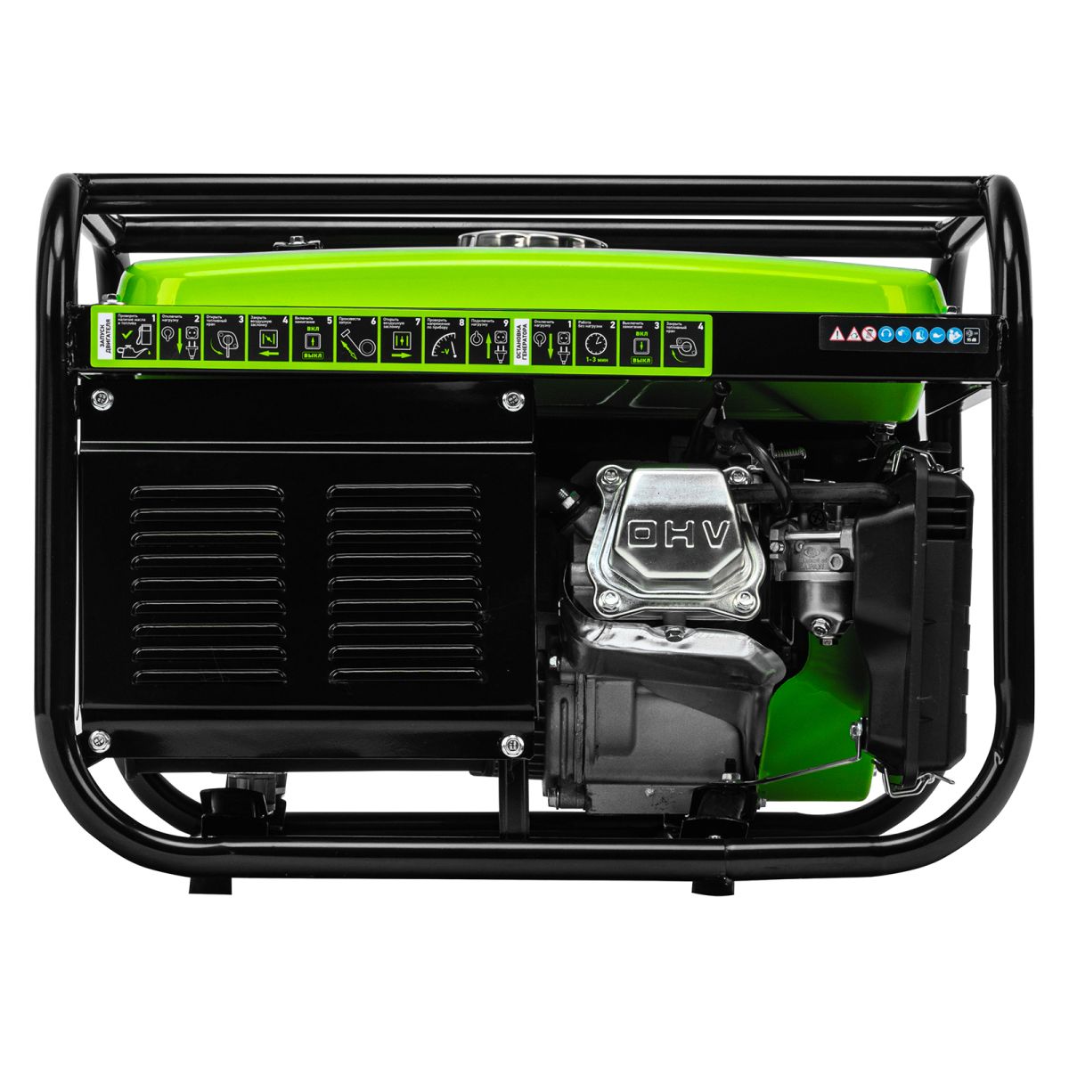 - Прочная конструкция — стальная рама надежно защищает генератор от повреждений.
