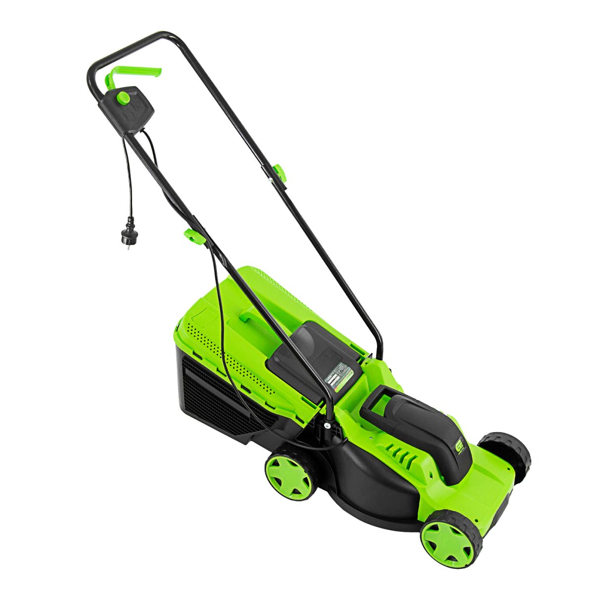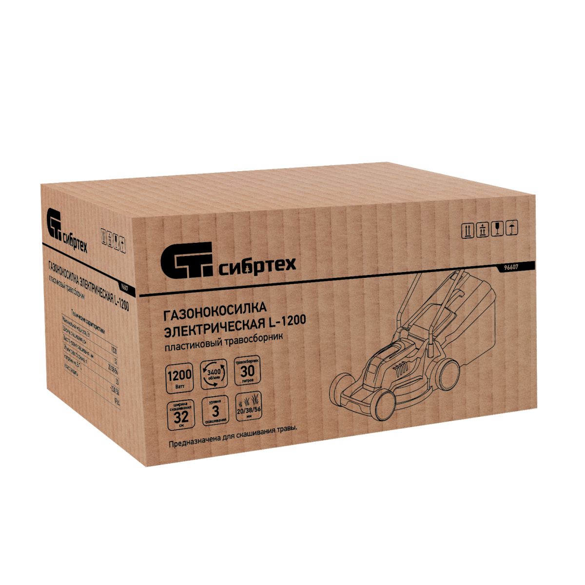 Электрическая газонокосилка Сибртех L1200 96607 мощностью 1200 Вт, с 3 уровнями скашивания, оснащена пластиковым травосборником на 30 л, а ширина ее прохода составляет 32 см. В зависимости от поставленных задач можно установить уровень скашивания 20, 38 и 56 мм. Косилка позволяет справиться в течение часа с газоном площадью до 1200 кв.м. Подойдет даже новичкам, т.к. очень проста в обслуживании и не требует смешивания и заливки топлива и масла.