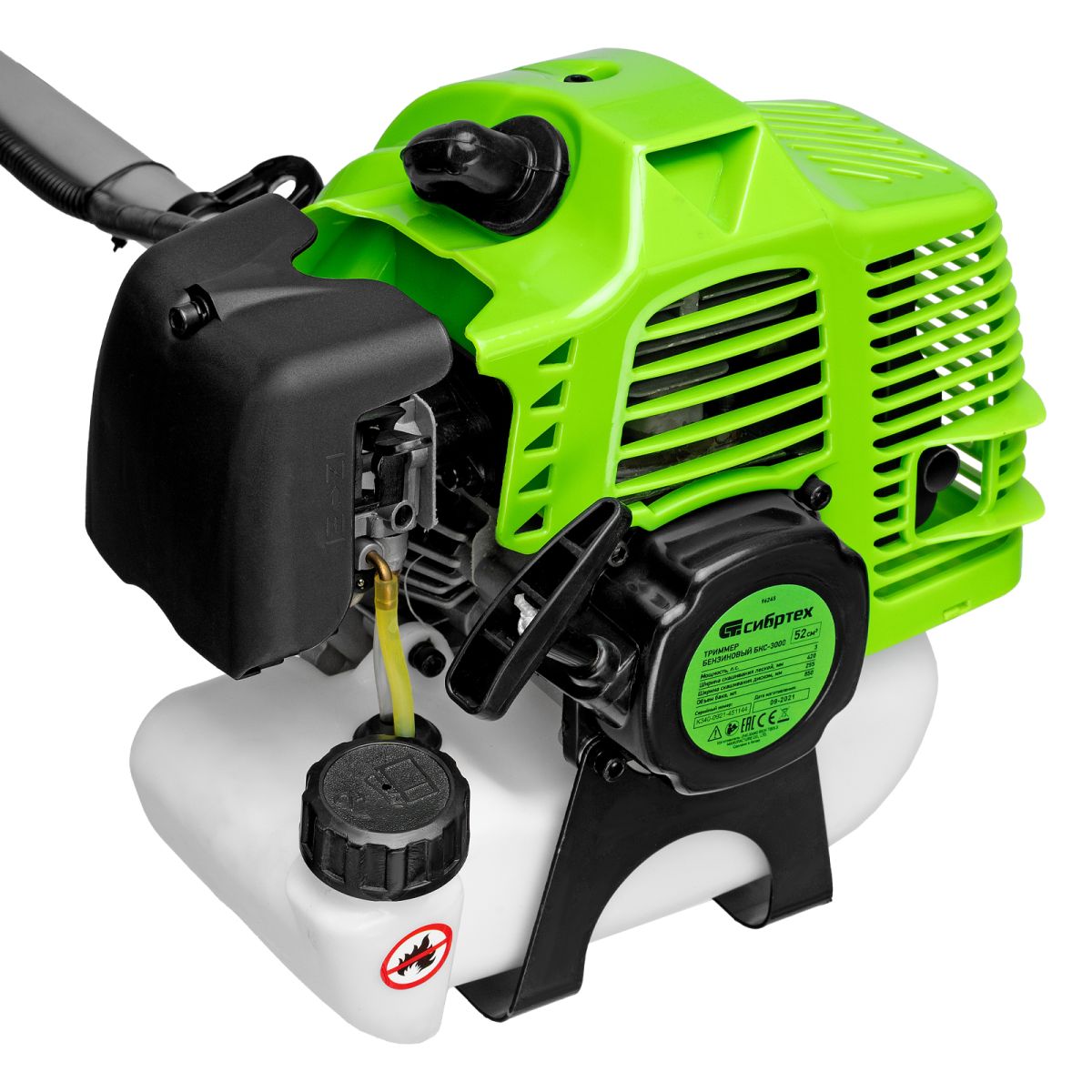 Бензиновый триммер Сибртех БКС-3000 96245 с мощным двигателем на 3 л. с. объемом 52 куб. см, с неразъемной штангой, поставляется комплектом из 2 частей и пригодится не только для облагораживания дачного участка, но и для заготовки сена в сельской местности или ухода за придомовыми территориями. В качестве режущего элемента используется катушка с леской и трехлопастный нож. С помощью лески можно выравнивать газон и формировать ландшафт. А нож поможет обработать запущенный участок — срезать бурьян, жесткую и высокую траву. Триммер эффективно справляется с густой травой, ширина скашивания леской составляет 42 см, ножом — 25,5 см, а значит, можно быстро обработать участок большой площади.