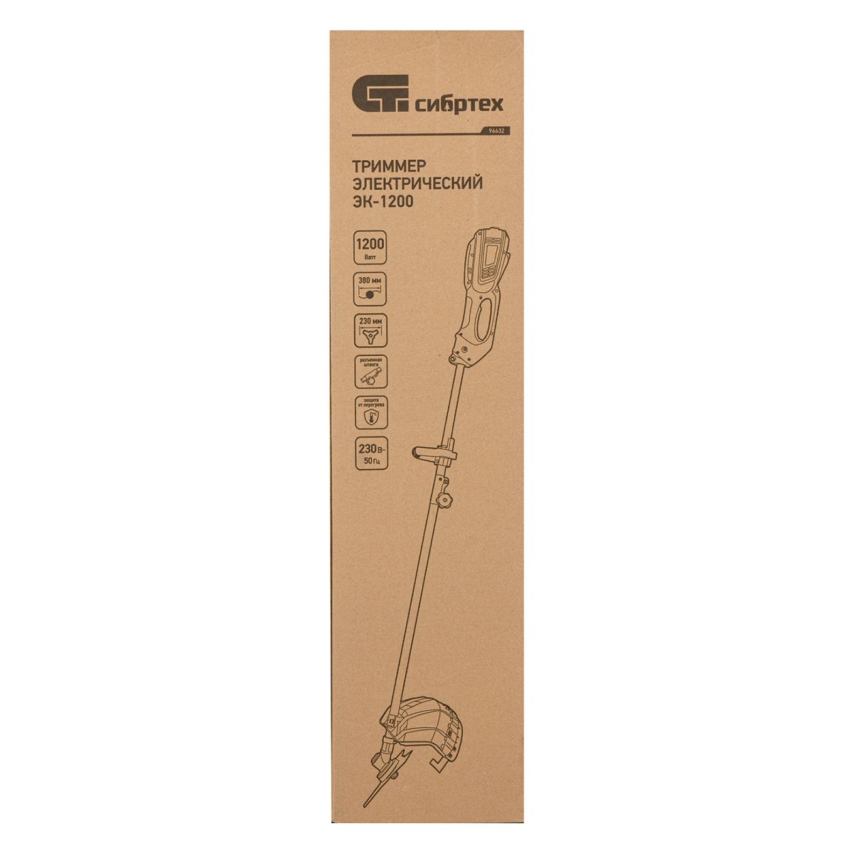 Электрический триммер Сибртех ЭК-1200 96632 мощностью 1200 Вт, с разборной штангой, предназначен для стрижки газона с помощью катушки с шириной скашивания 380 мм, а входящий в комплект режущий диск позволяет избавляться от сорняков, растительности с толстыми стеблями, а также срезать мелкий кустарник. Триммер пригодится в местах, недоступных для колесной газонокосилки: между грядками, вдоль стен, заборов и тротуаров. С ним легко справится даже неопытный пользователь, т. к. он прост в применении и не нуждается в техническом обслуживании.