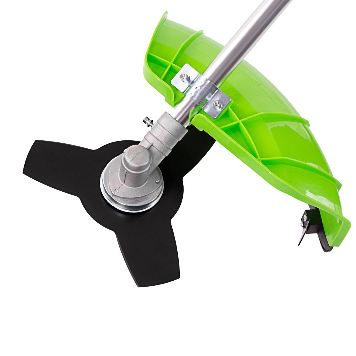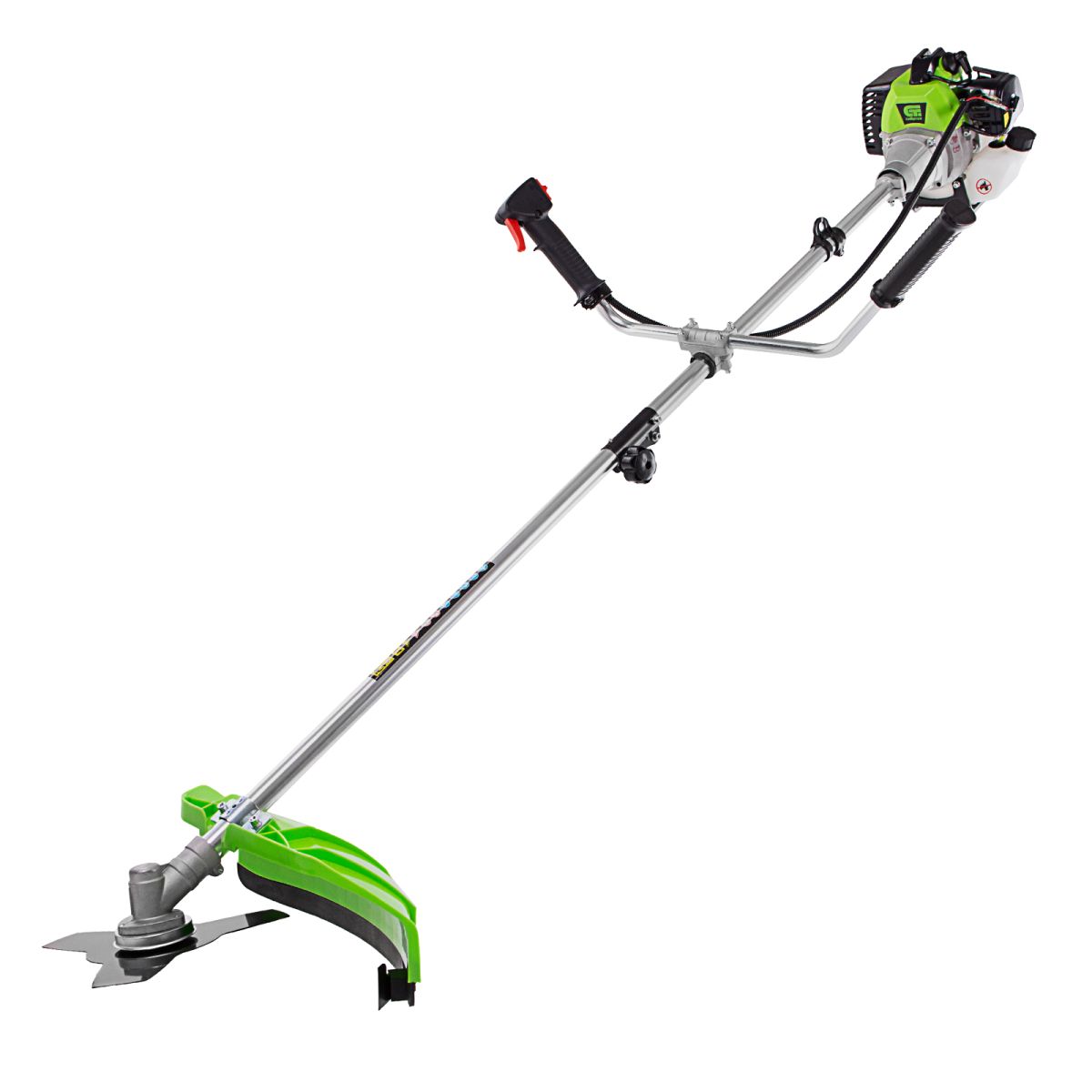 - Защита от летящей травы и камней — режущий элемент со стороны пользователя закрыт прочным пластиковым кожухом.