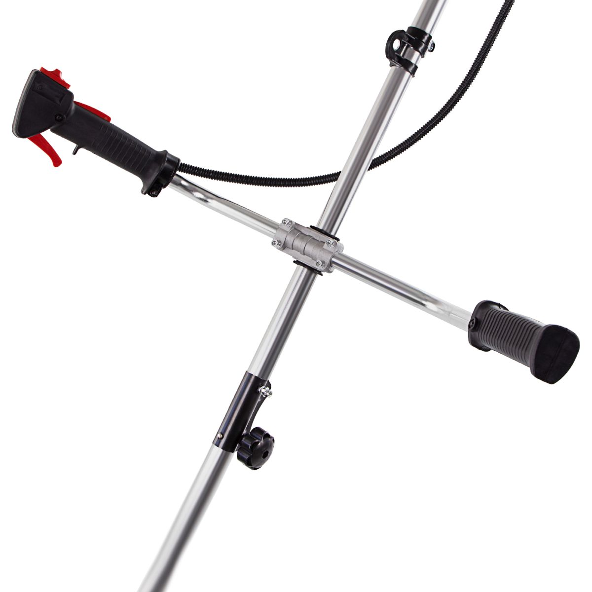 - Комфорт во время работы — велосипедные рукоятки и плечевой ремень обеспечивают оптимальное положение тела и правильное распределение нагрузки.