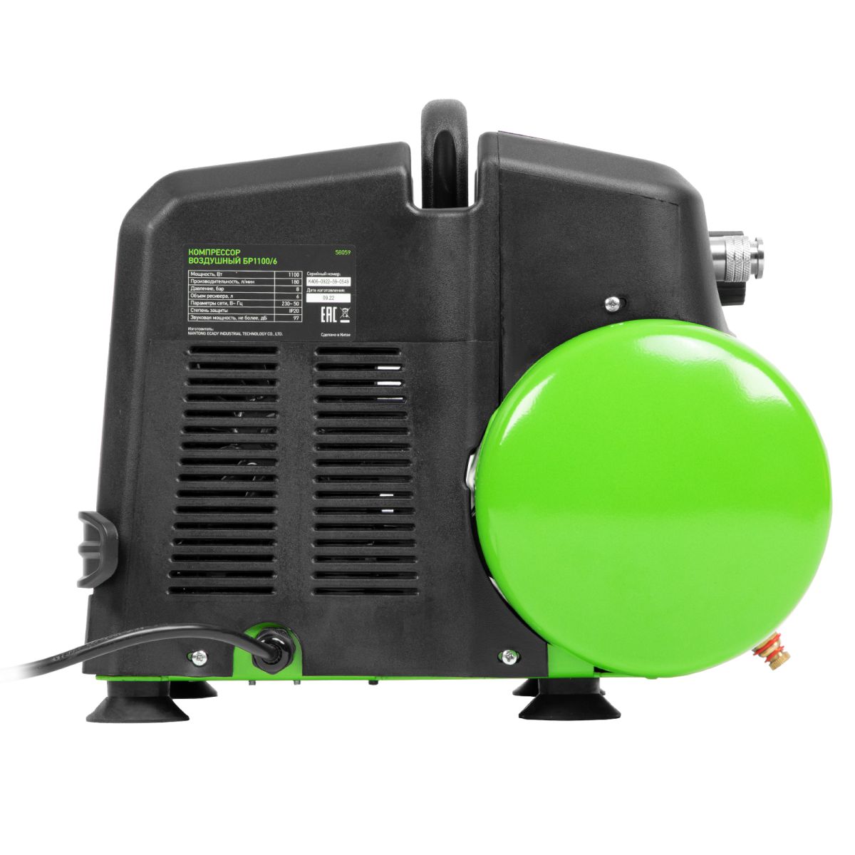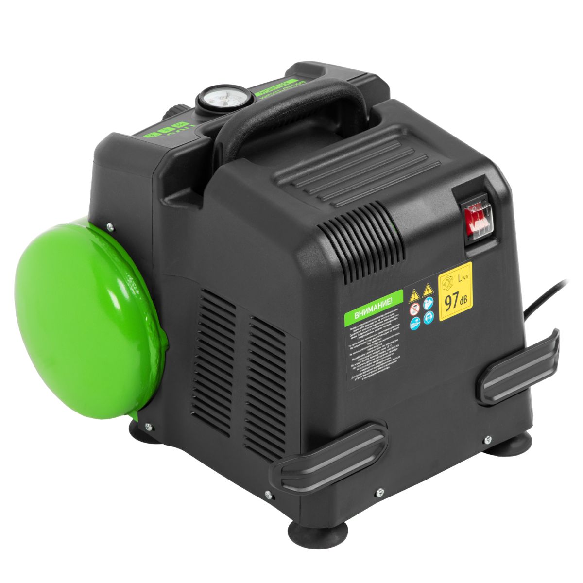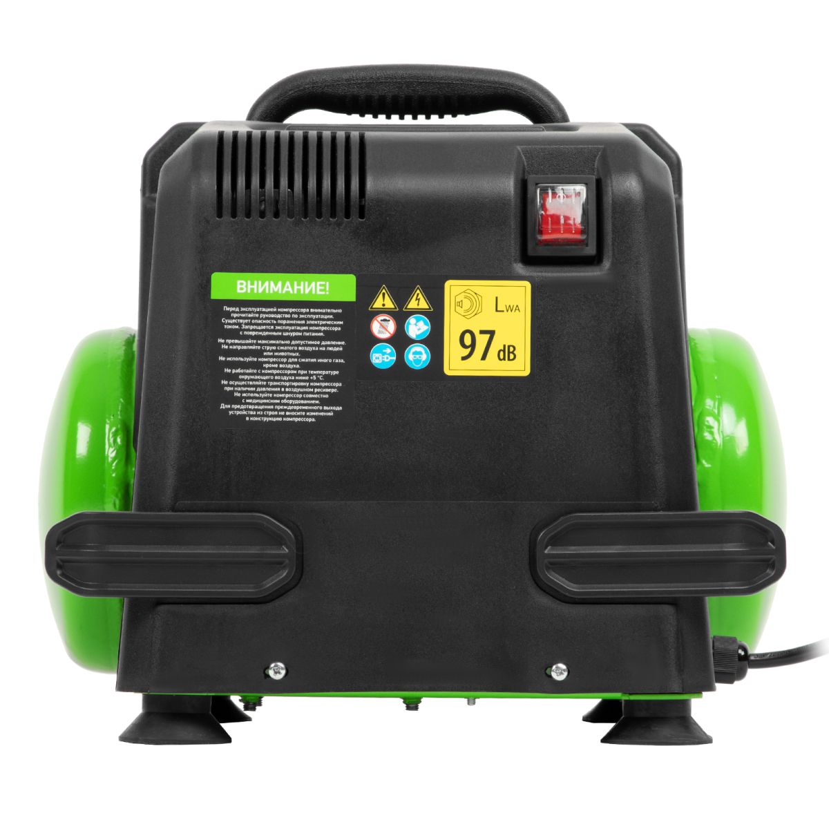 - Продуманная конструкция — виброгасящие опоры обеспечивают устойчивость компрессора во время работы.