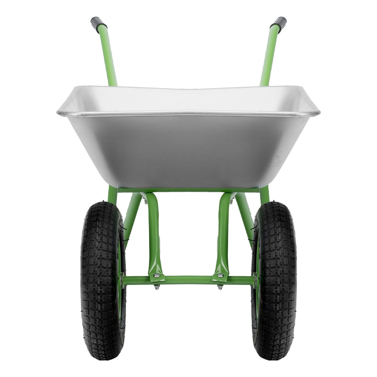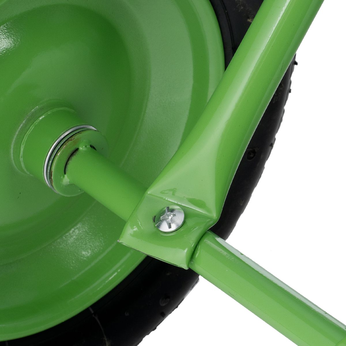 - Удобное перемещение даже по неровной поверхности — пневмоколеса с камерами и резиновыми шинами повышают плавность хода, каждое колесо оснащено 2 шариковыми подшипниками, облегчающими вращение и препятствующими износу.