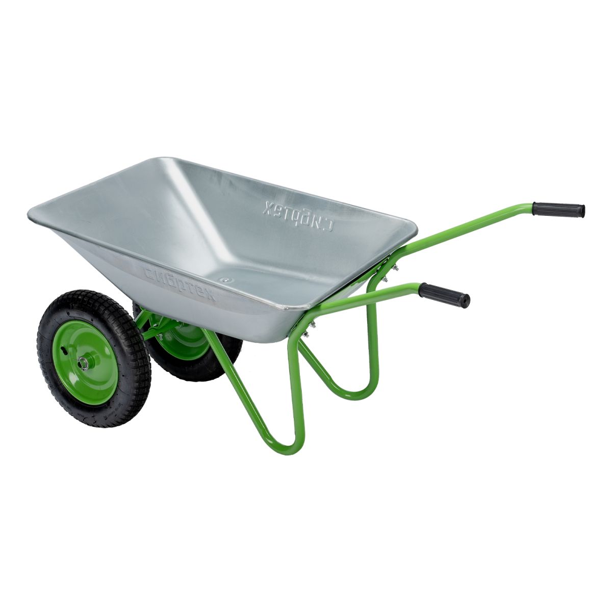 Двухколесная садовая тачка Сибртех 689135 грузоподъемностью 120 кг, с объемом кузова 65 л, служит для транспортировки легких грузов при выполнении садовых и сельскохозяйственных работ. С ее помощью можно привести в порядок территорию и убрать листья, собрать урожай и выполнить другие работы на загородном участке. Два колеса обеспечивают высокую грузоподъемность, а также устойчивость во время движения по прямой и на поворотах. Вес груза распределяется равномерно, поэтому тачка не проваливается даже в рыхлый грунт.