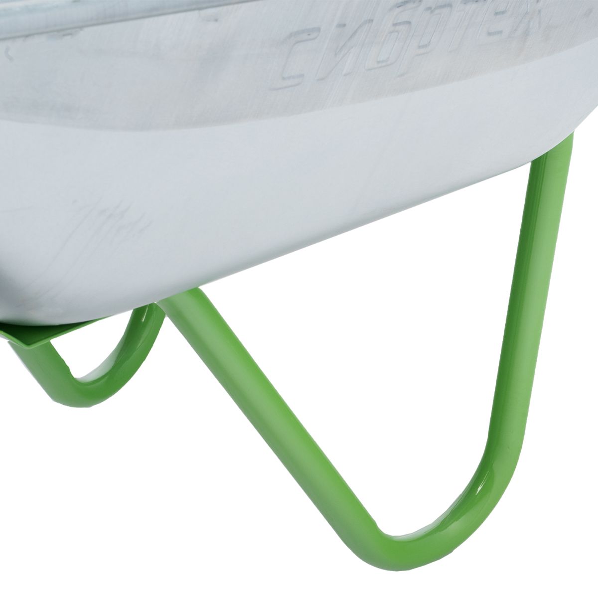 - Антикоррозийная защита — стальное корыто оцинковано, а рама, опора и колесные диски покрыты порошковой эмалью.