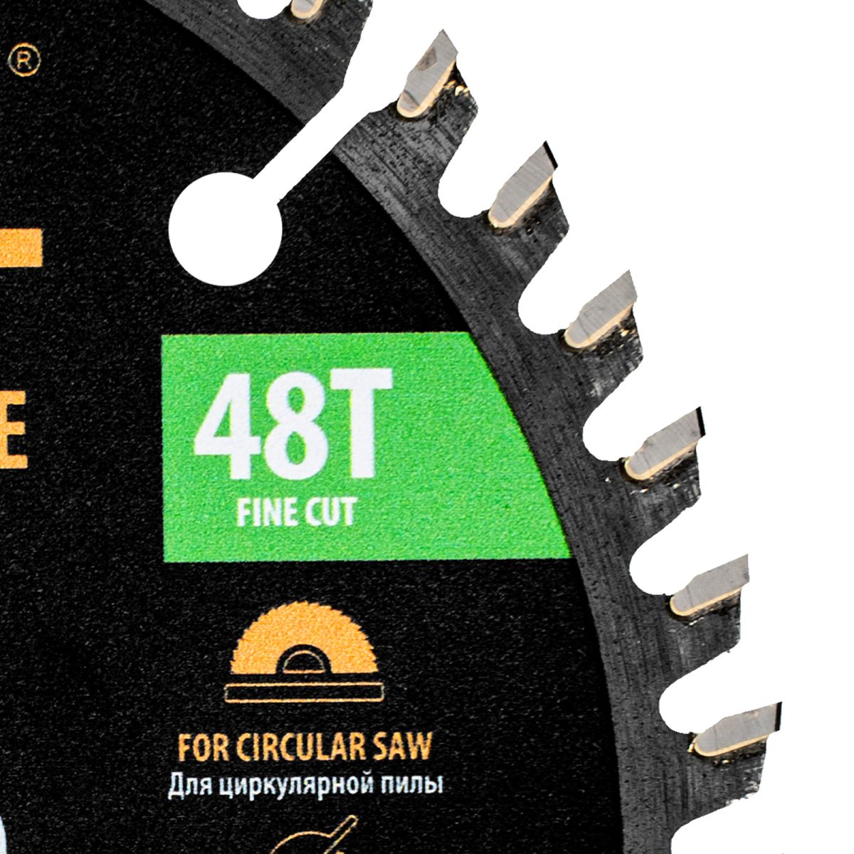 Пильный диск Denzel 733817 диаметром 140 x 20 мм, с 48 зубьями, используется для распиливания ламината, ЛДСП, МДФ, фанеры, паркетной доски. 48 трапециевидно-плоских зубьев с положительным углом заточки позволяют эффективно решать поставленные задачи, обеспечивая чистый рез. Тип реза — стандартный. Диск устанавливается на циркулярную или торцовочную пилу, а также на распиловочный станок. Можно установить оснастку на инструмент с другим посадочным диаметром — для этого предусмотрено переходное кольцо 20/16 мм.