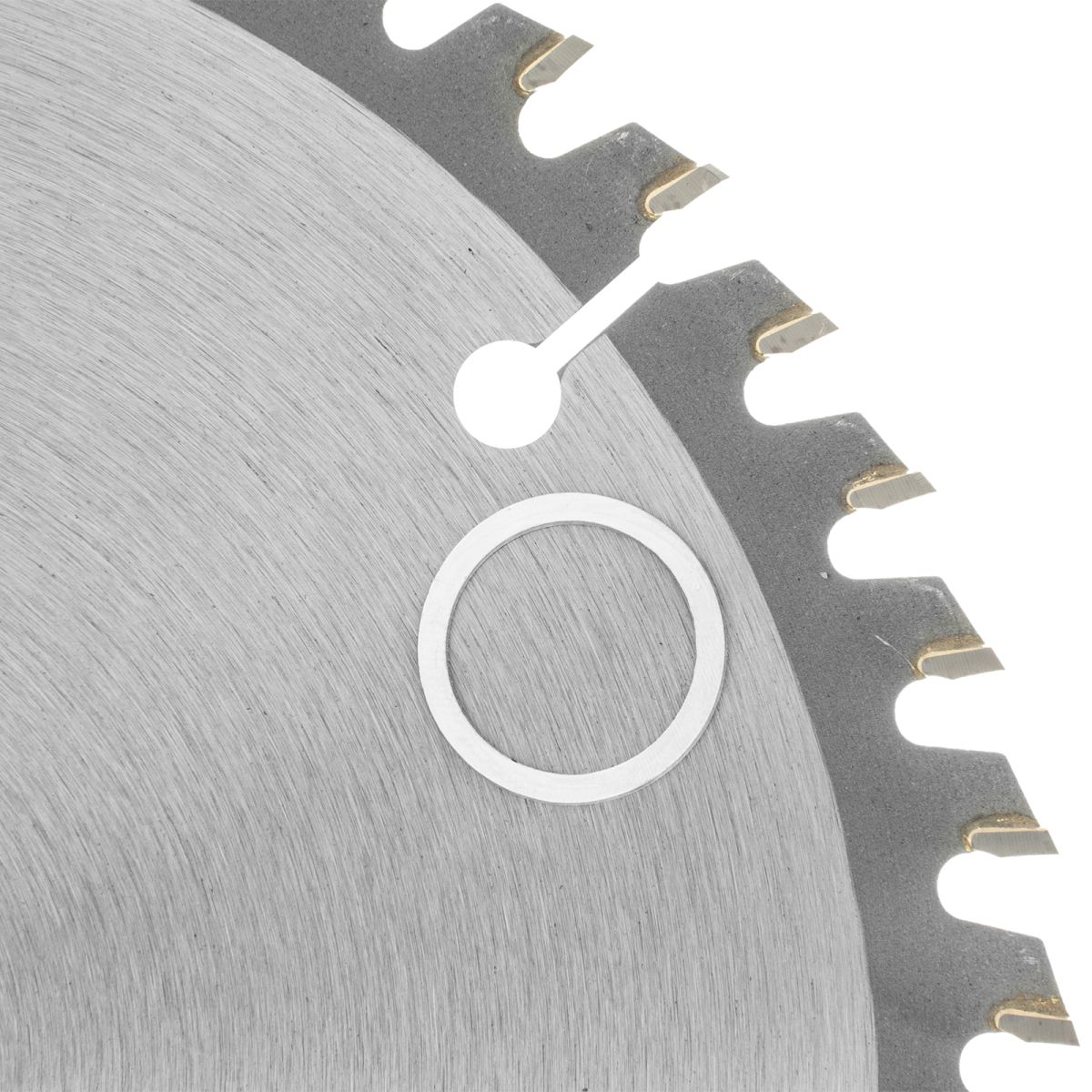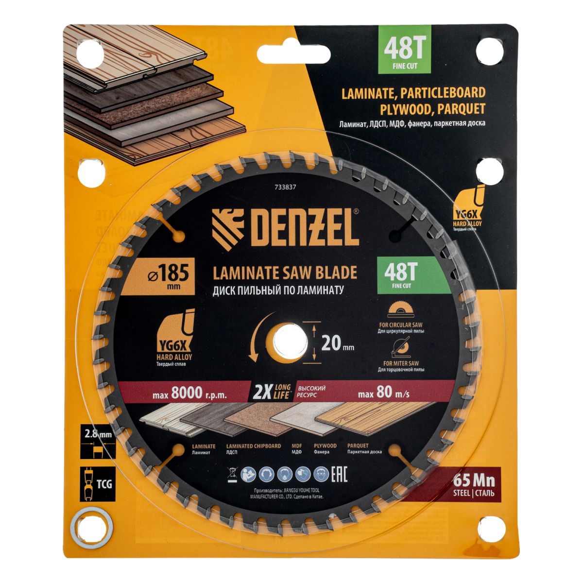 Пильный диск Denzel 733837 диаметром 185 x 20 мм, с 48 зубьями, используется для распиливания ламината, ЛДСП, МДФ, фанеры, паркетной доски. 48 трапециевидно-плоских зубьев с положительным углом заточки позволяют эффективно решать поставленные задачи, обеспечивая чистый рез. Тип реза — стандартный. Диск устанавливается на циркулярную или торцовочную пилу, а также на распиловочный станок. Можно установить оснастку на инструмент с другим посадочным диаметром — для этого предусмотрено переходное кольцо 20/16 мм.