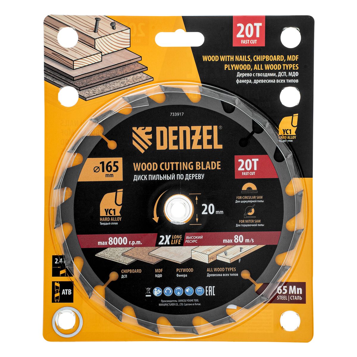 Пильный диск Denzel 733917 диаметром 165 x 20 мм, с 20 зубьями типа ATB, предназначен для быстрого продольного и поперечного распиливания древесины всех типов, в том числе с гвоздями и остатками бетона, а также ДСП, МДФ, фанеры. Режущие пластины из твердого сплава YC1, прошедшие многоступенчатую заточку, позволяют успешно справляться с прочными материалами. Диск устанавливается на циркулярную, торцовочную пилу или на распиловочный станок. В комплект поставки входит переходное кольцо 20/16 мм, позволяющее изменить посадочный диаметр при необходимости.