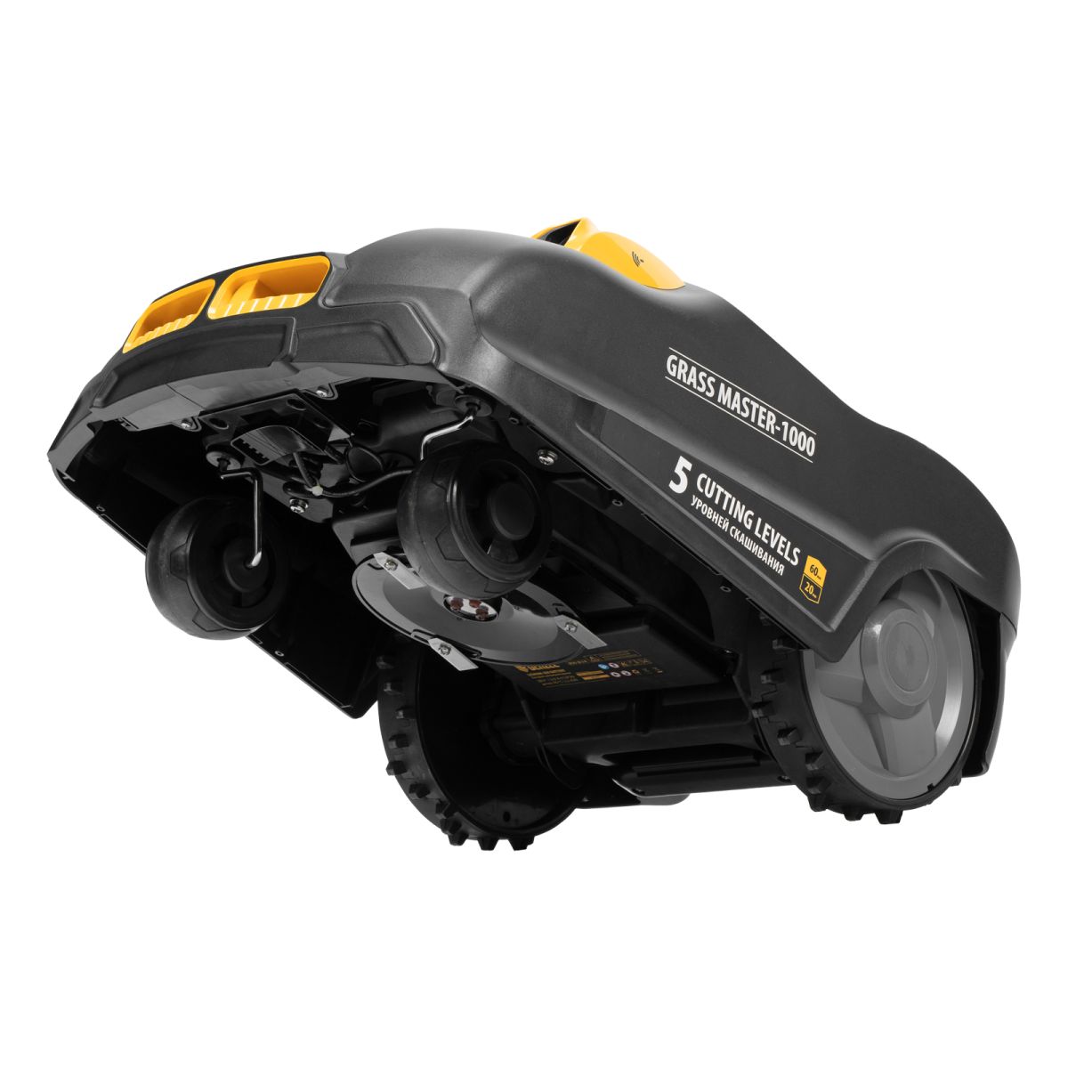 Техника ухаживает за территорией в автономном режиме, без участия пользователя. Перемещается по заранее определенному участку, контур которого задан при помощи ограничительного провода, входящего в комплект поставки. Площадь рабочей зоны составляет 1000 м². Можно настроить траекторию движения: хаотичную или спиральную. Высота скашивания регулируется в диапазоне 20-60 мм, для этого предусмотрен специальный диск под крышкой в верхней части корпуса.
