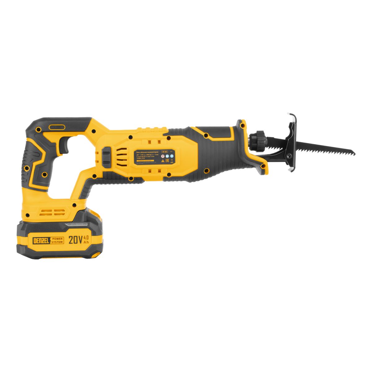 Пила сабельная аккумуляторная - 1 штЛезвие сабельной пилы - 1 штАккумуляторная батарея Denzel Power System - 1 штЗарядное устройство - 1 штПолотно пильное по дереву - 1 штПолотно пильное по металлу - 1 штРуководство по эксплуатации с гарантийным талоном - 1 шт