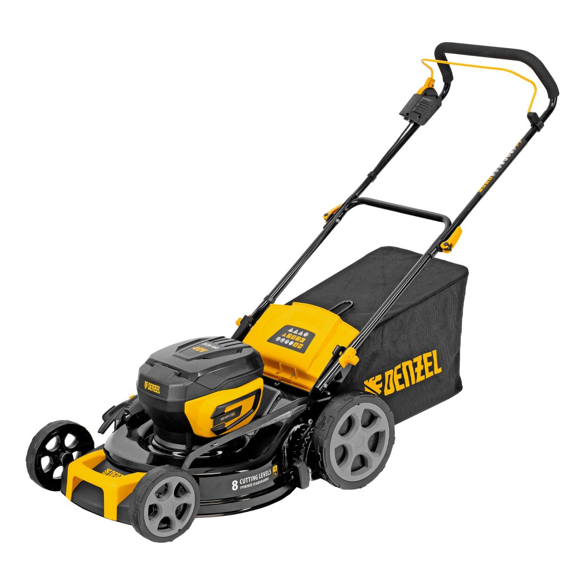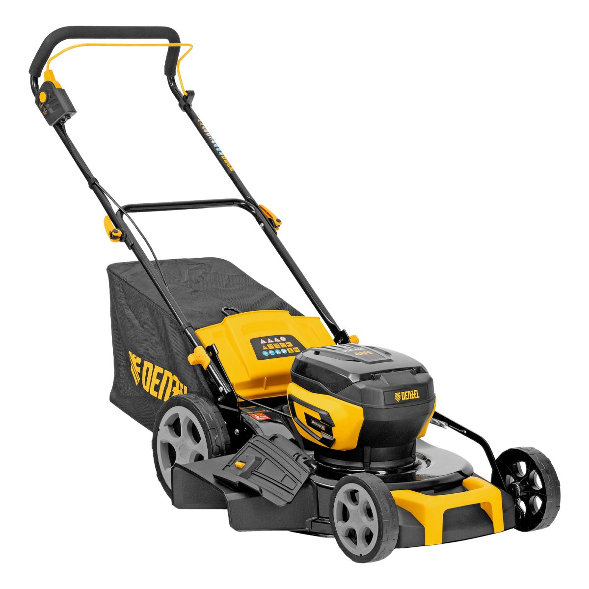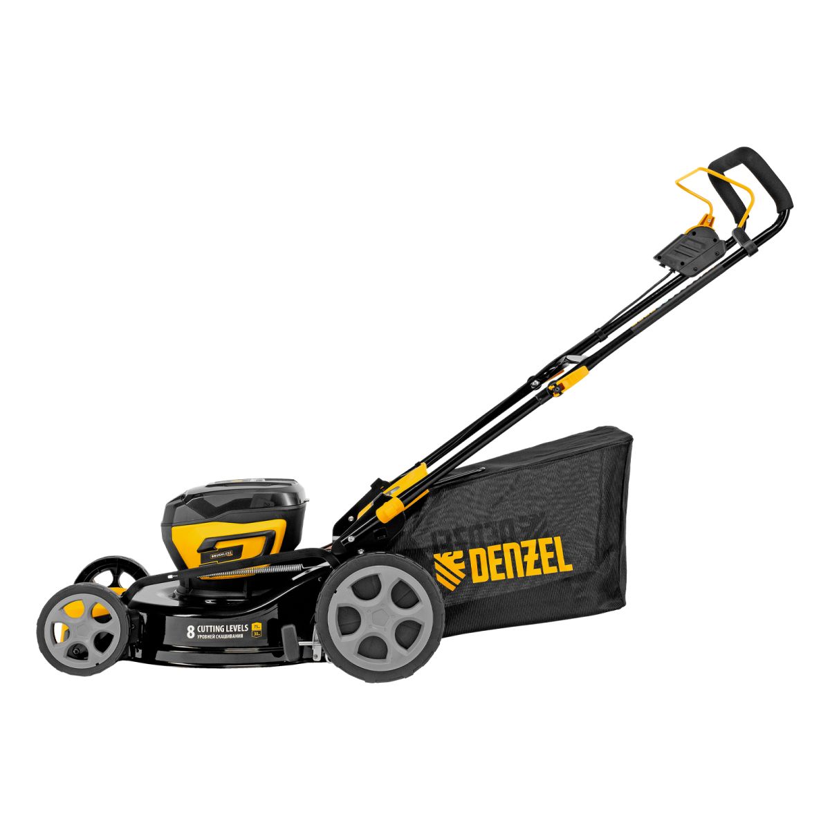 Аккумуляторная газонокосилка Denzel DLM-460 58911 с бесщеточным двигателем и травосборником объемом 65 л работает от двух аккумуляторов Li-Ion с рабочим напряжением 20 V каждый и обеспечивает ширину скашивания 460 мм. Высоту скашиваемой травы можно регулировать: предусмотрено 8 уровней в диапазоне 30-75 мм. Для регулировки предусмотрен специальный рычаг. Мощный бесщеточный двигатель обеспечивает высокую эффективность работы и не требует сложного ухода. Тканевый травосборник не утяжеляет конструкцию, его легко опустошать. Газонокосилка оптимальна для ухода за садом, огородом или небольшим приусадебным участком.
