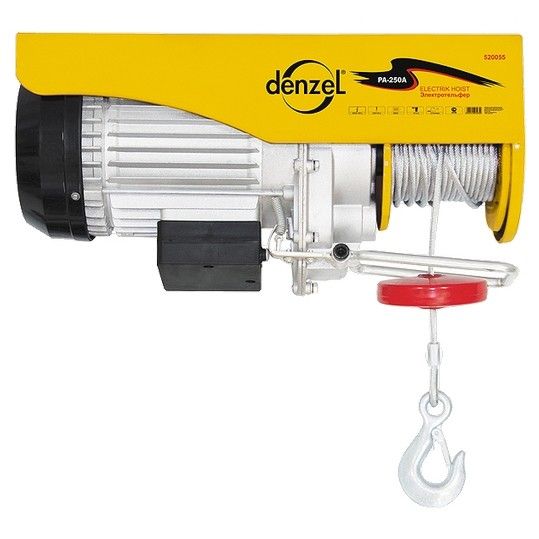 Электрический тельфер Denzel 520155 мощностью 1600 Вт предназначен для подъема грузов массой до 1 т на высоту 12 м. Будет полезен на строительной площадке, в цеху, автосервисе.